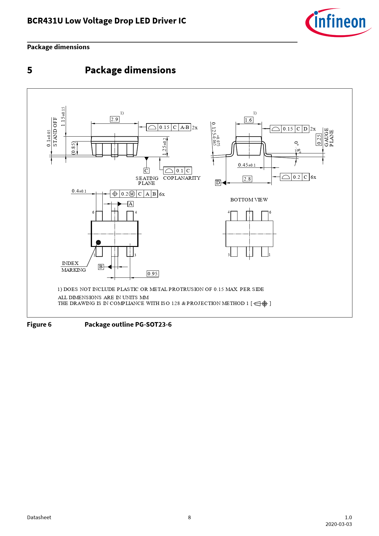 BCR431U Low Voltage Drop LED Driver IC. Package dimensions. Figure 6. Package outline PG-SOT23-6