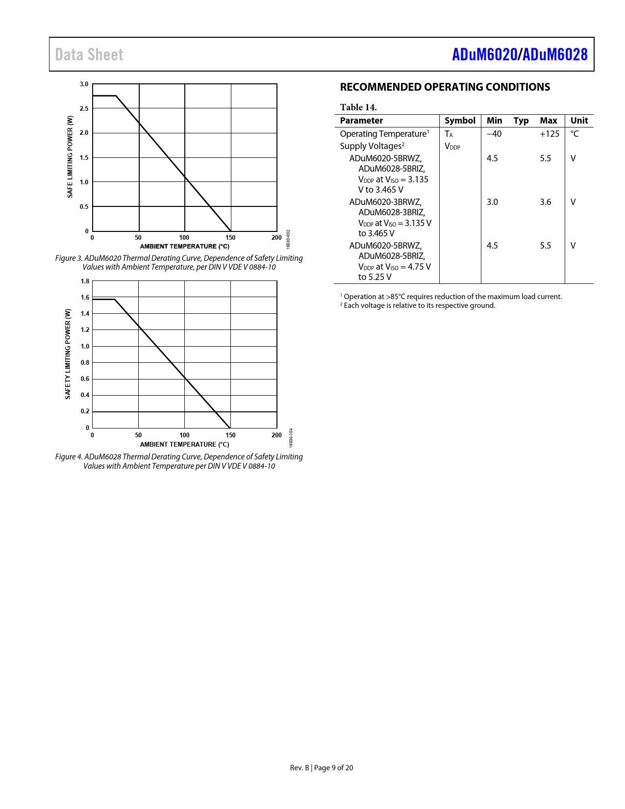 Pages / Page20 / 9 — Data Sheet. ADuM6020/. ADuM6028. 3.0. RECOMMENDED OPERATING CONDITIONS. …