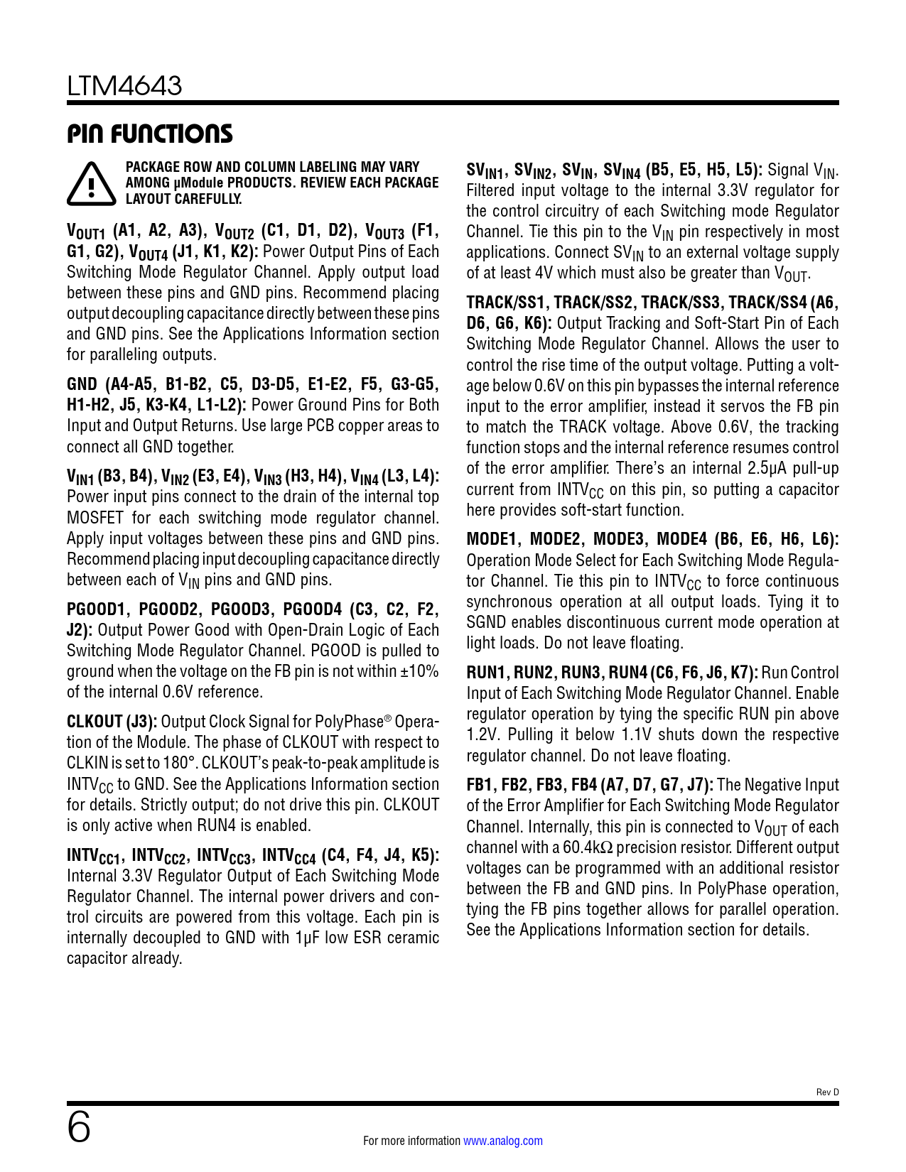 Pages / Page32 / 6 — PIN FUNCTIONS. PACKAGE ROW AND COLUMN LABELING MAY VARY. SVIN1, SVIN2, …
