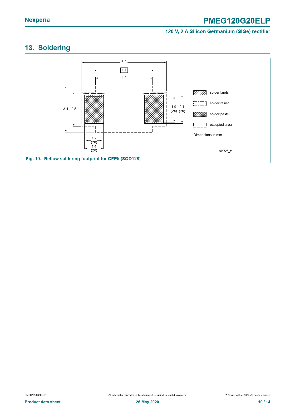 Nexperia. PMEG120G20ELP. 120 V, 2 A Silicon Germanium (SiGe) rectifier. 13. Soldering