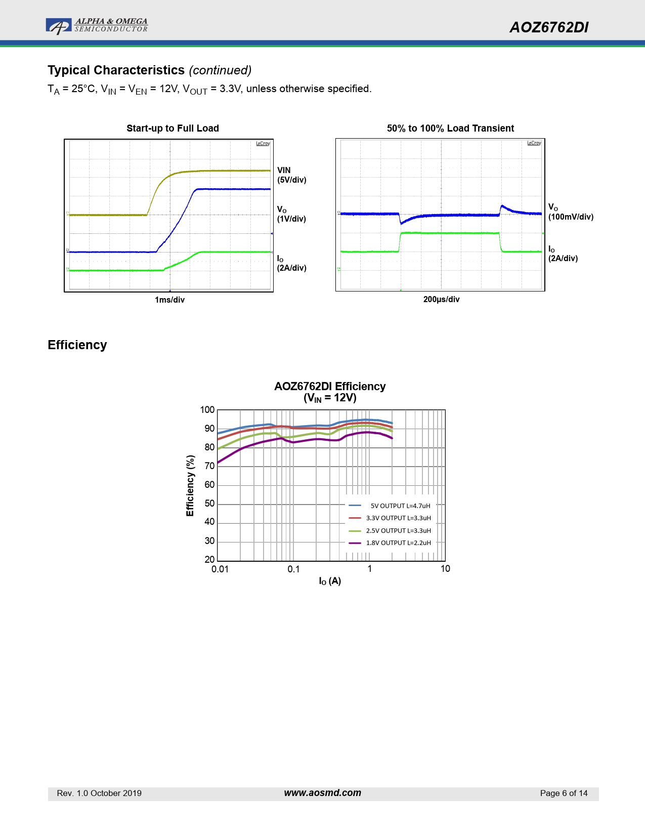 | Pages / Page | 14 / 6 — AOZ6762DI. Typical Characteristics. Start-up to Full Load. 50% to 100% … |