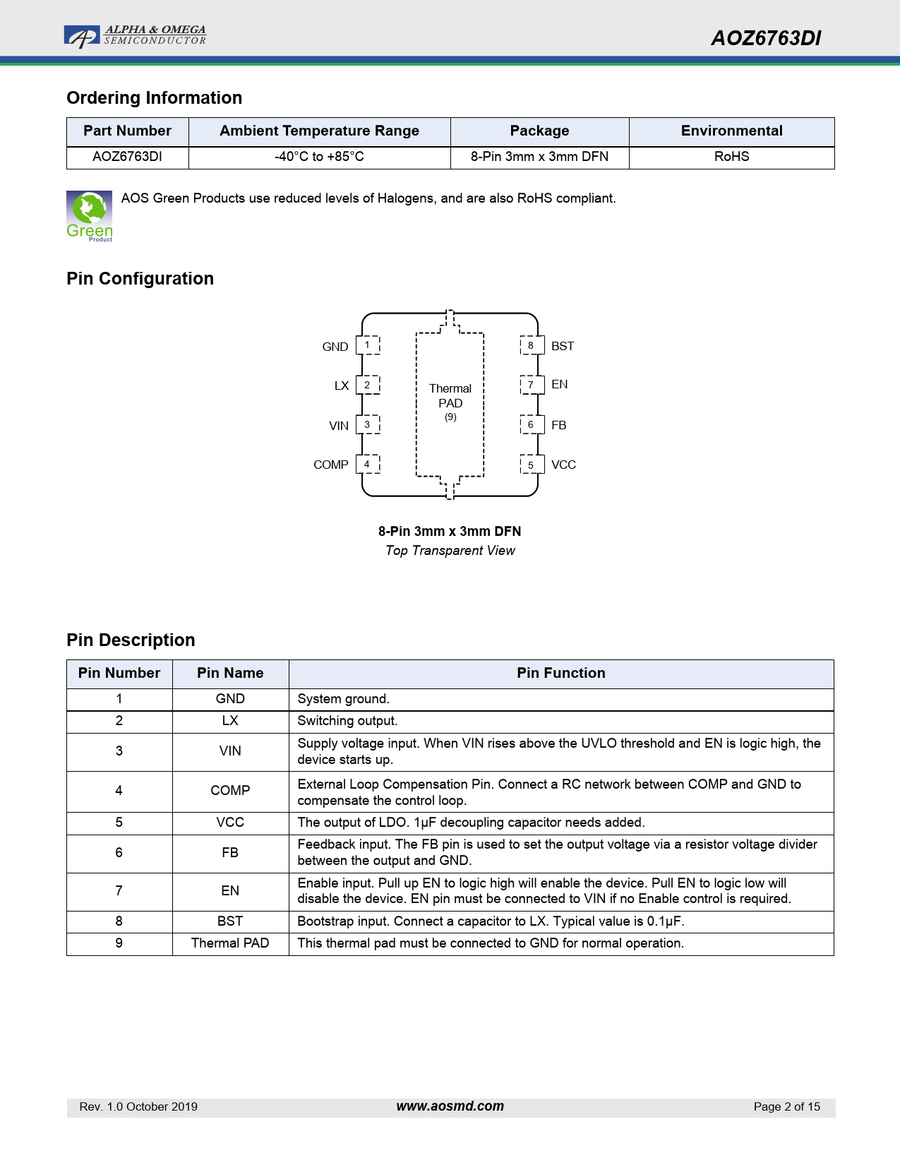 AOZ6763DI Ordering Information Part Number Ambient Temperature Range Package Environmental Pin Configuration