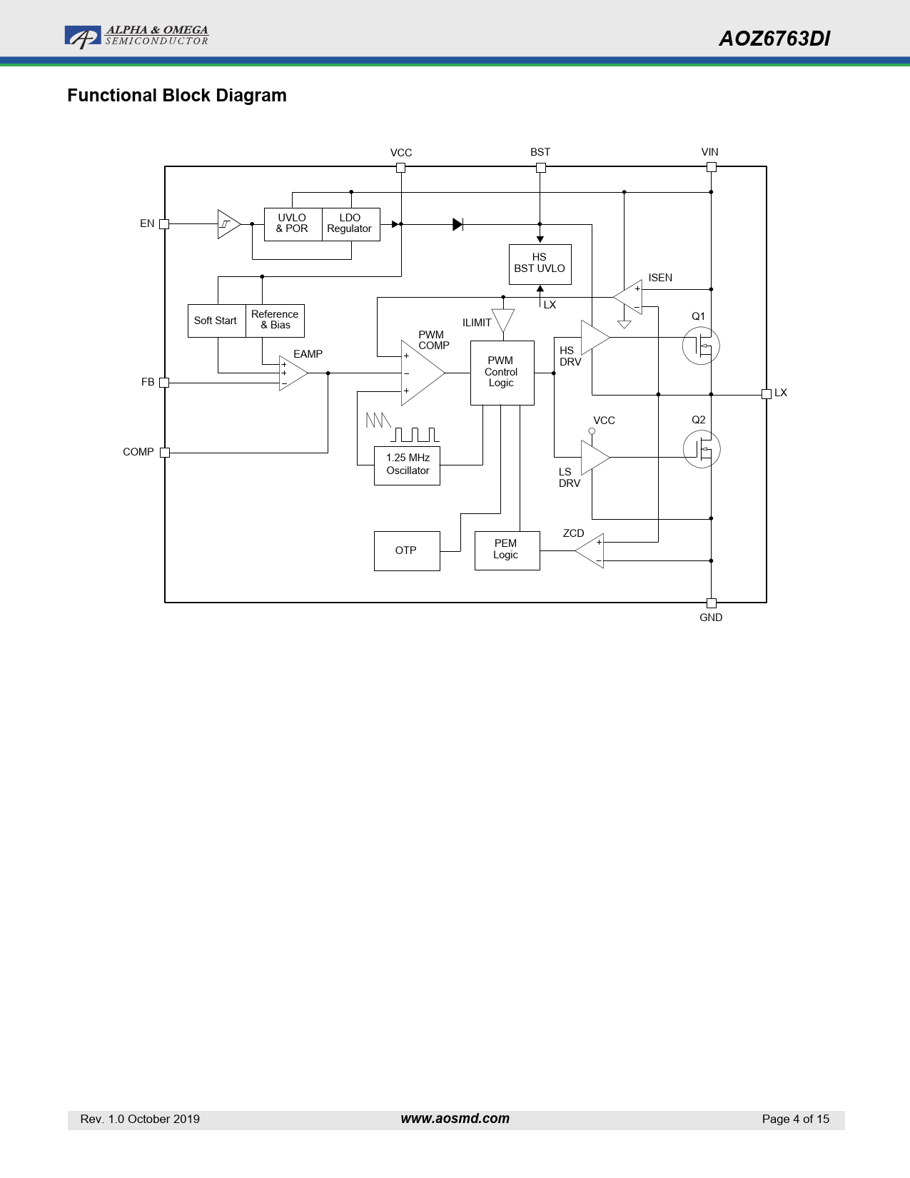 | Pages / Page | 15 / 4 — AOZ6763DI. Functional Block Diagram. www.aosmd.com |