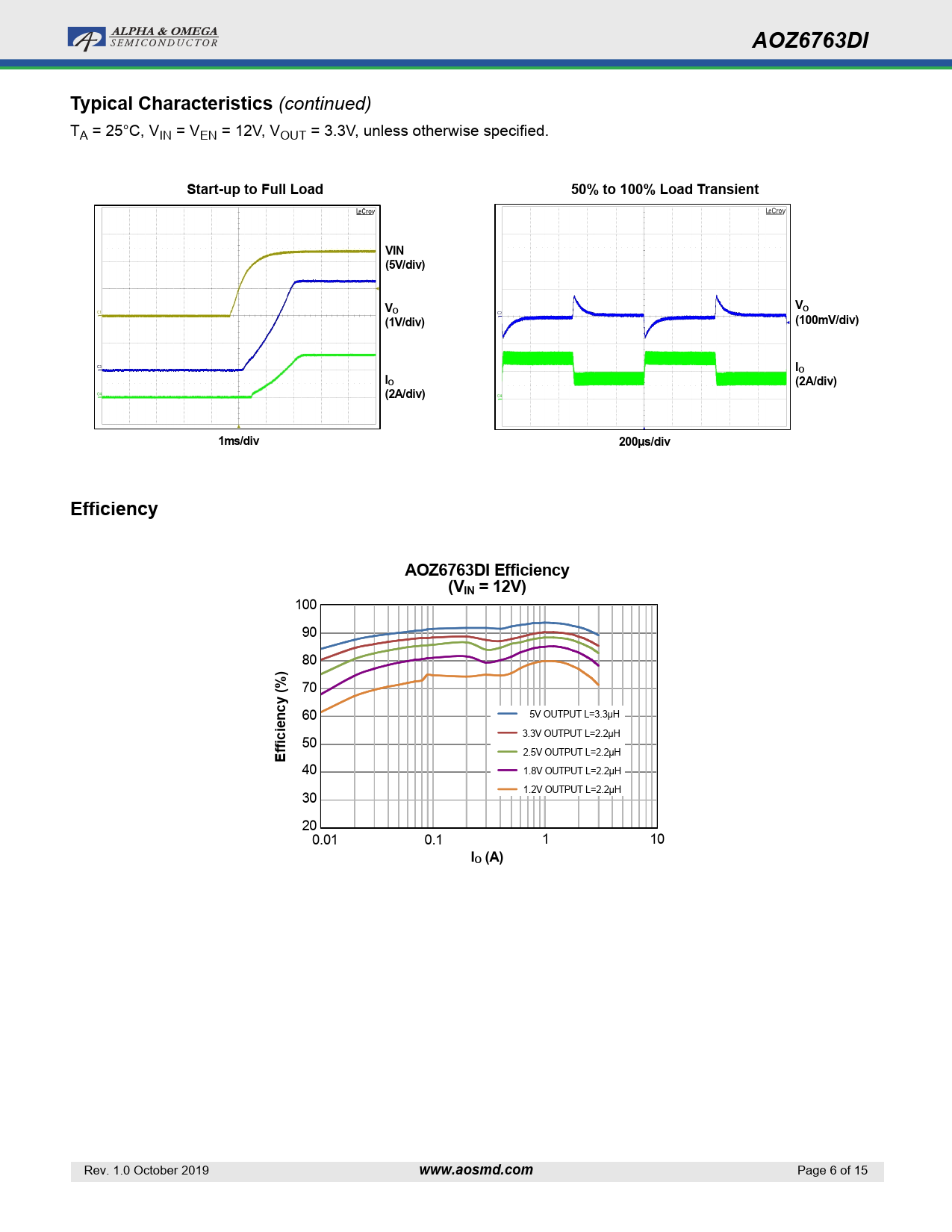 | Pages / Page | 15 / 6 — AOZ6763DI. Typical Characteristics. Start-up to Full Load. 50% to 100% … |