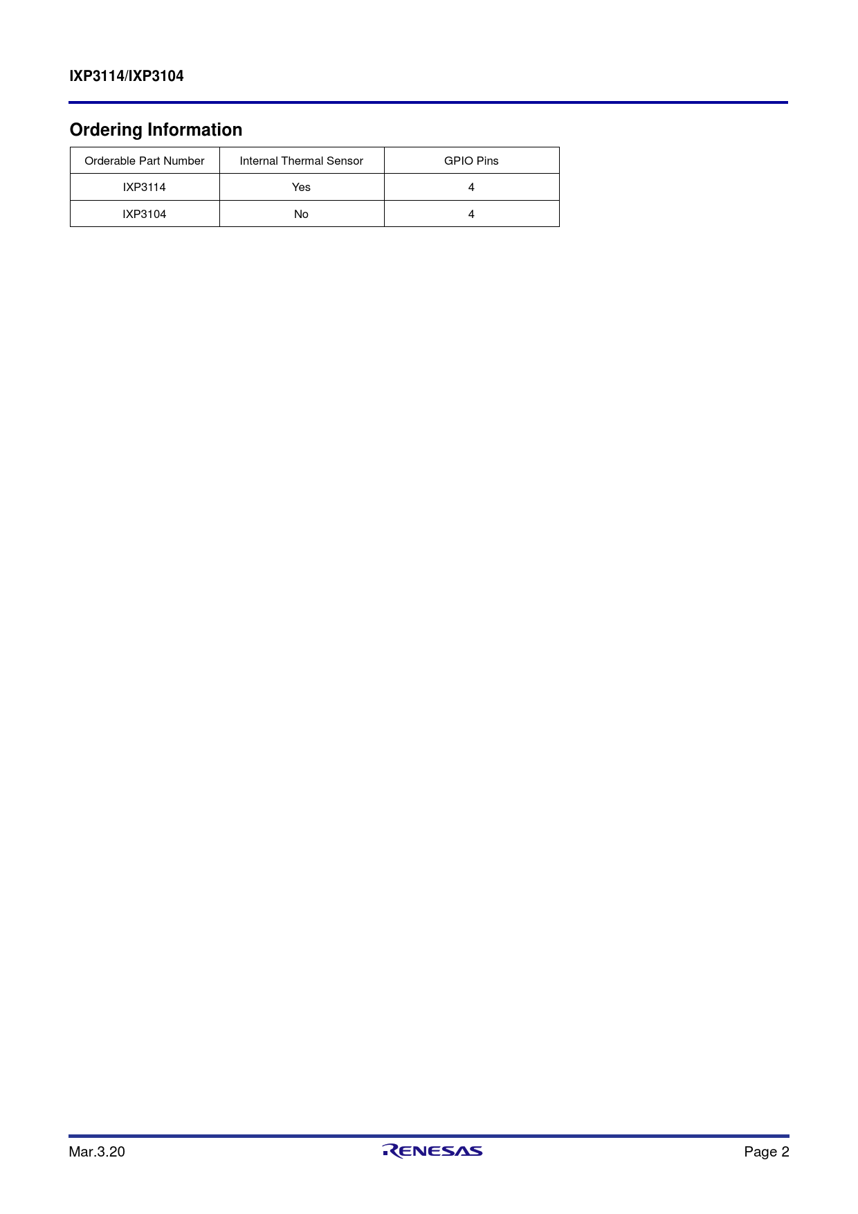 Orderable Part Number Internal Thermal Sensor GPIO Pins IXP3114 Yes 4 IXP3104 No 4 Mar.3.20 Page 2