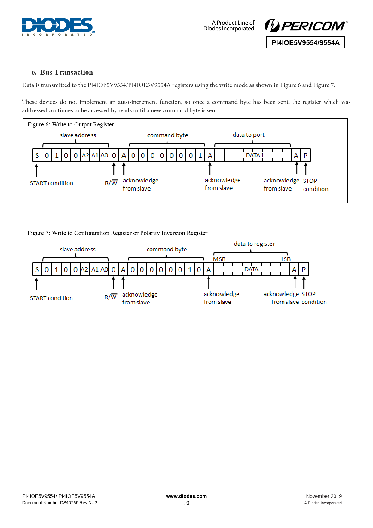 | Pages / Page | 17 / 10 — PI4IOE5V9554/9554A. e. Bus Transaction. www.diodes.com |