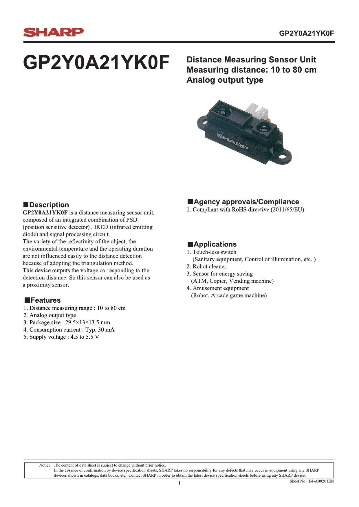 Distance Measuring Sensor Unit Measuring distance: 10 to 80 cm Analog output type