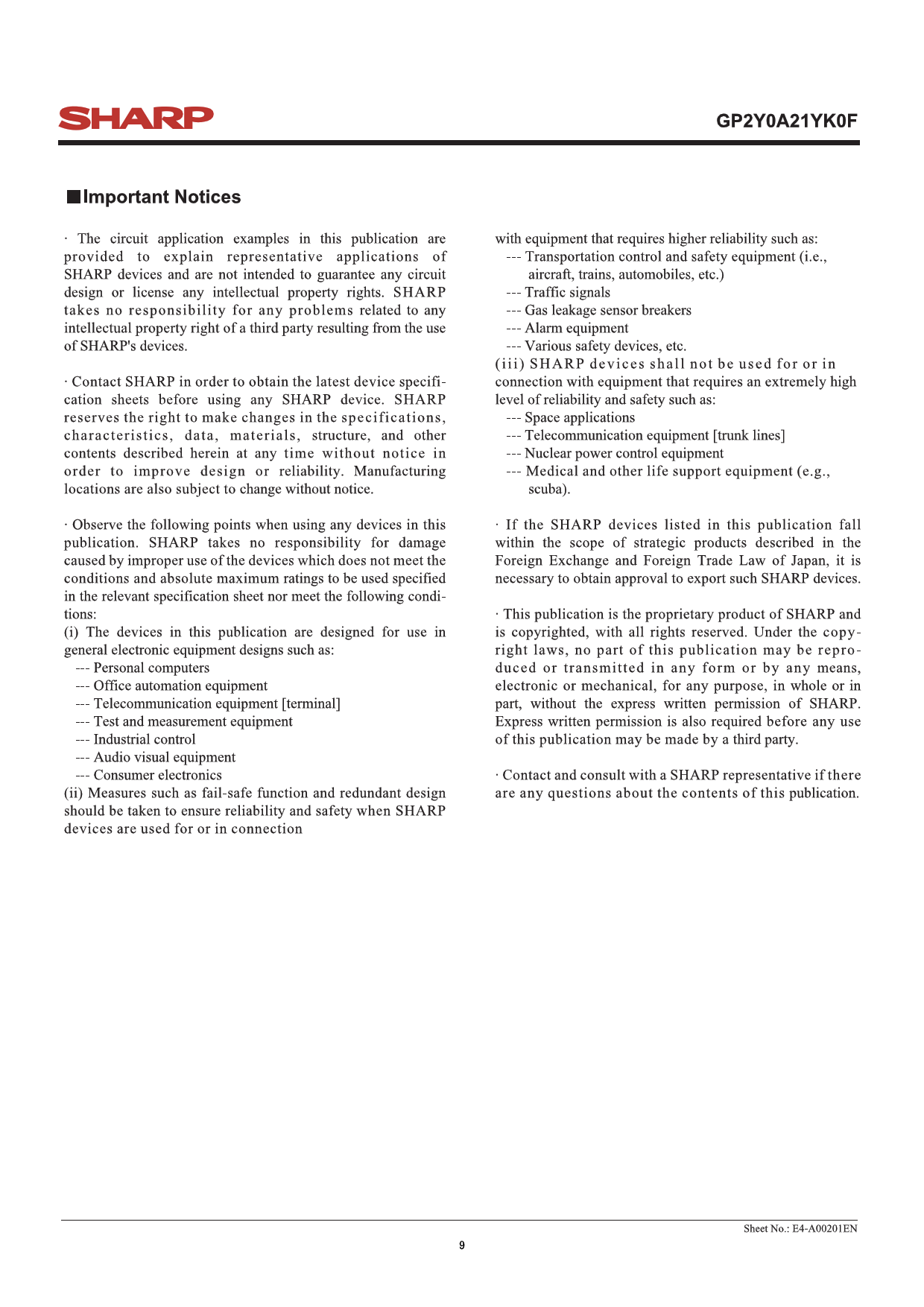 Datasheet GP2Y0A21YK0F (Sharp) - 9