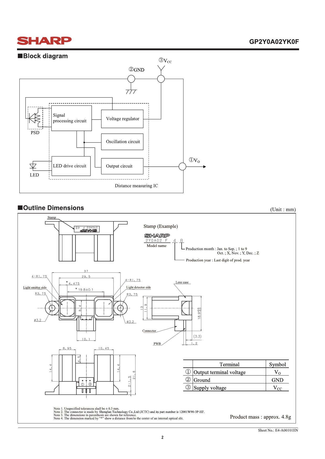 Datasheet GP2Y0A02YK0F (Sharp) - 2