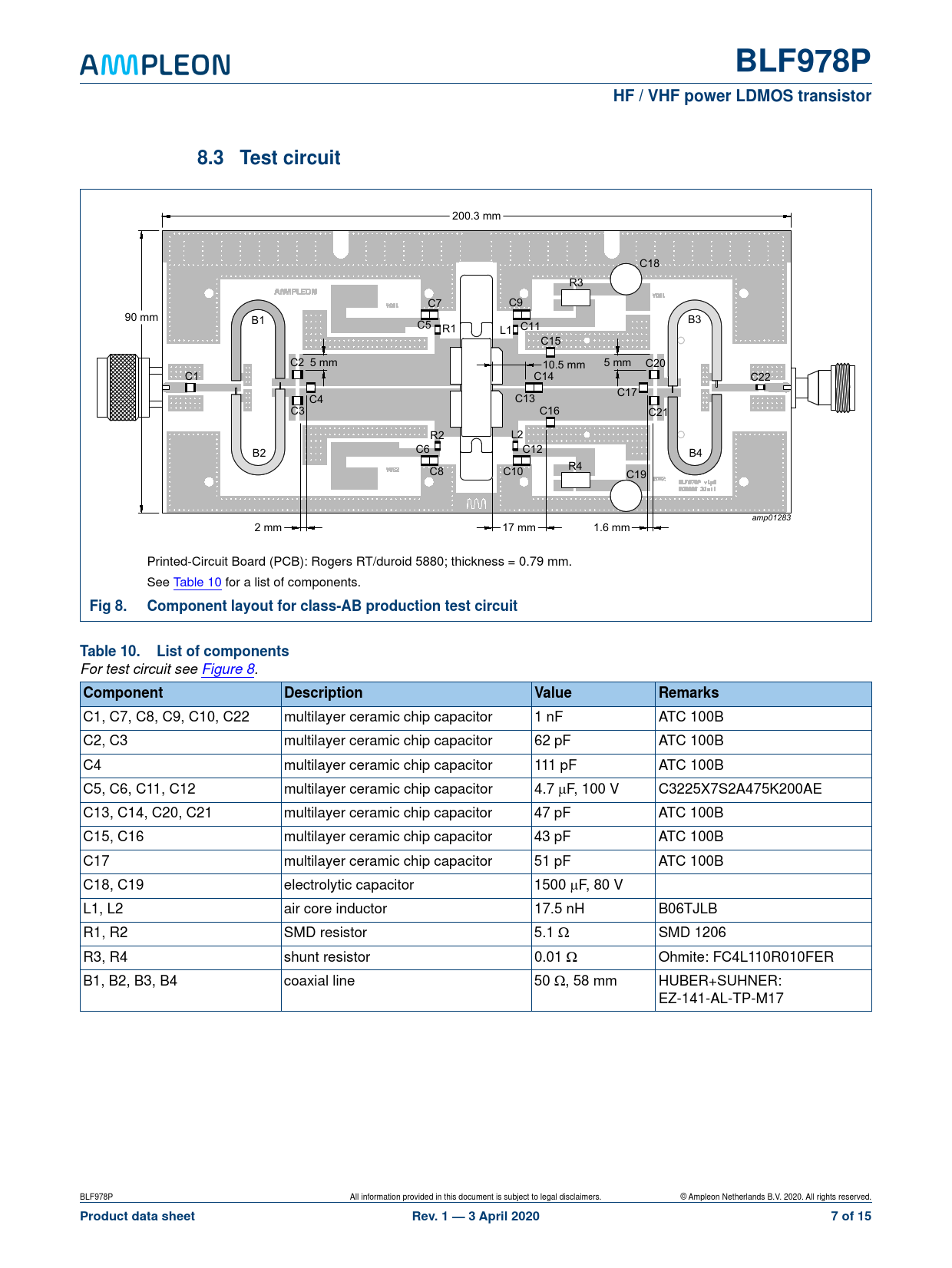 | Pages / Page | 15 / 7 — BLF978P. HF / VHF power LDMOS transistor. 8.3 Test circuit. Fig 8. … |
