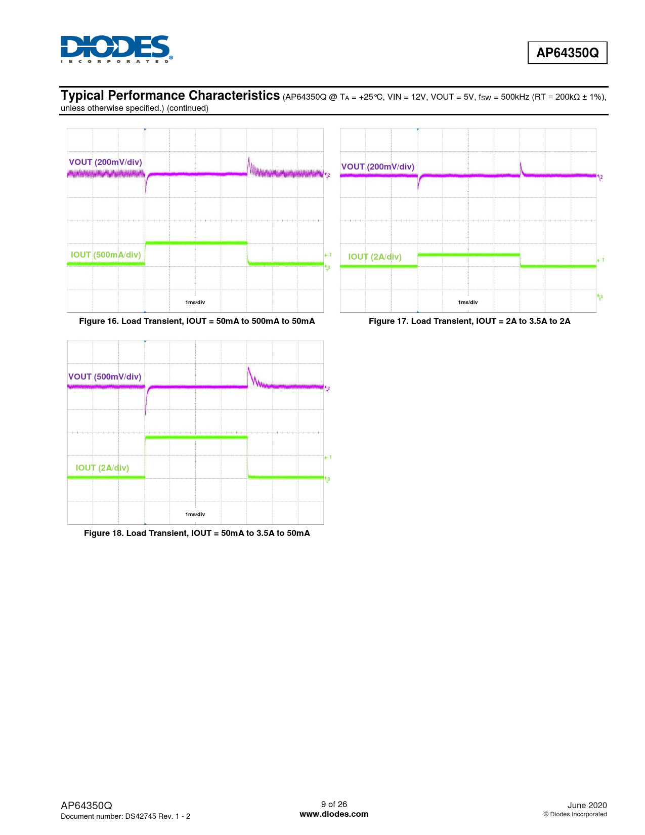 AP64350Q. Typical Performance Characteristics. VOUT (200mV/div). IOUT (500mA/div). IOUT (2A/div). 1ms/div
