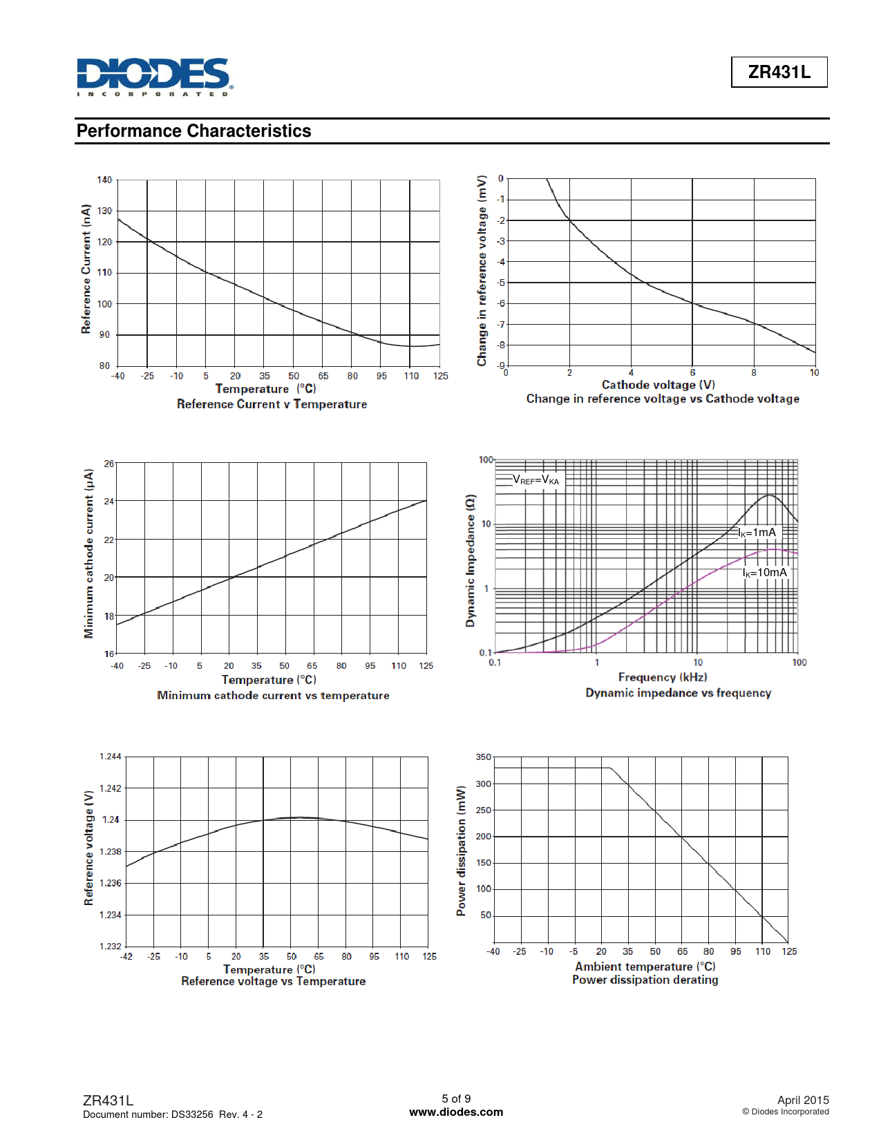 | Pages / Page | 9 / 5 — ZR431L. Performance Characteristics. www.diodes.com |
