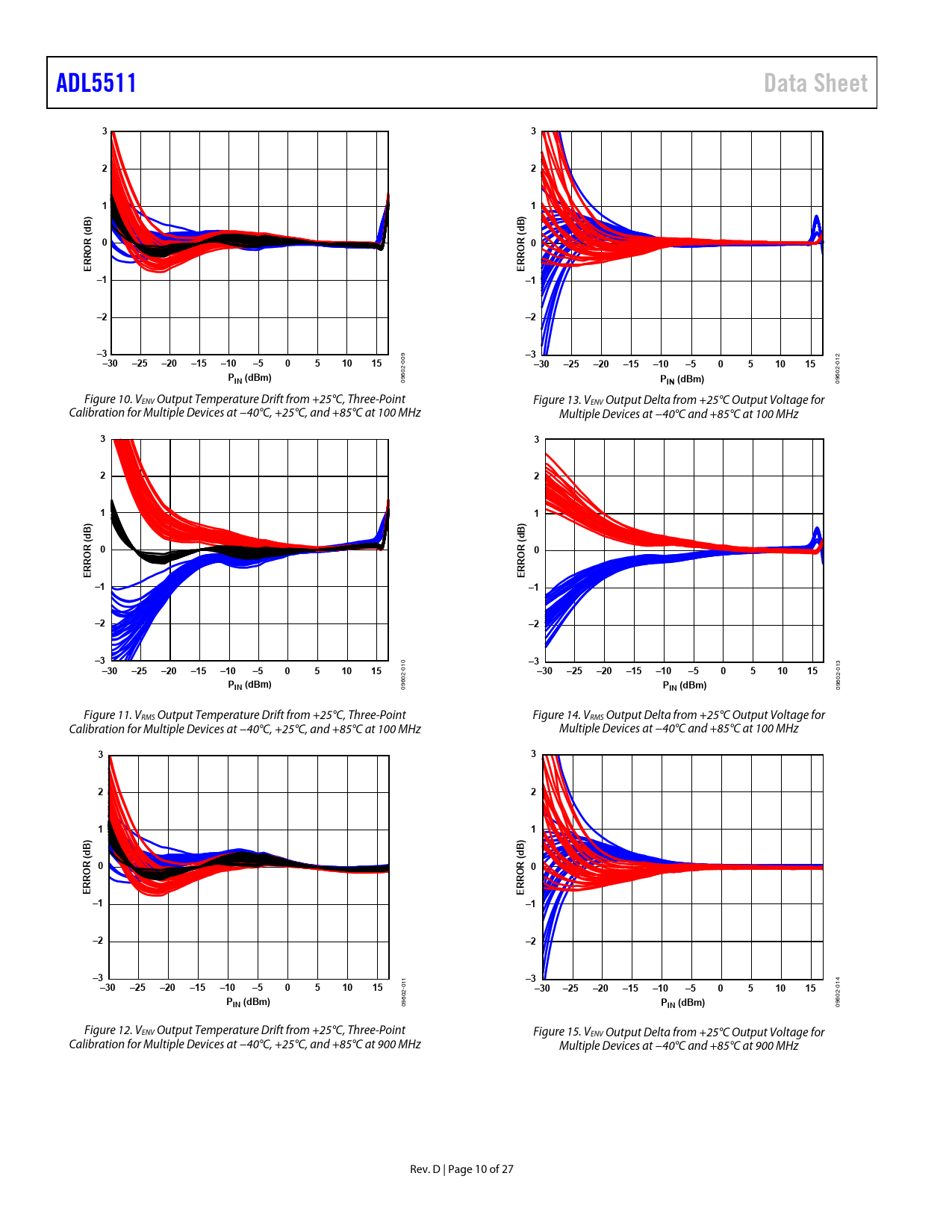 096 Figure 11. VRMS Output Temperature Drift from +25°C, Three-Point Figure 14. VRMS Output Delta from +25°C Output Voltage for Calibration for Multiple Devices at −40°C, +25°C, and +85°C at 100 MHz Multiple Devices at −40°C and +85°C at 100 MHz