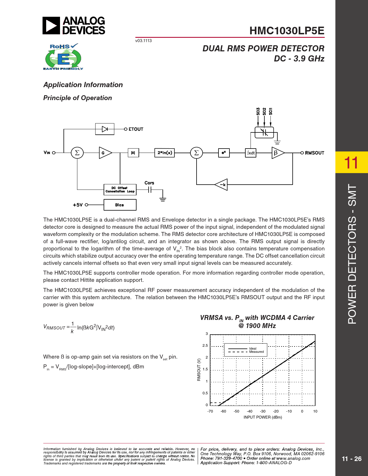 HMC1030LP5E. DUAL RMS POWER DETECTOR. DC - 3.9 GHz. Application Information. Principle of Operation