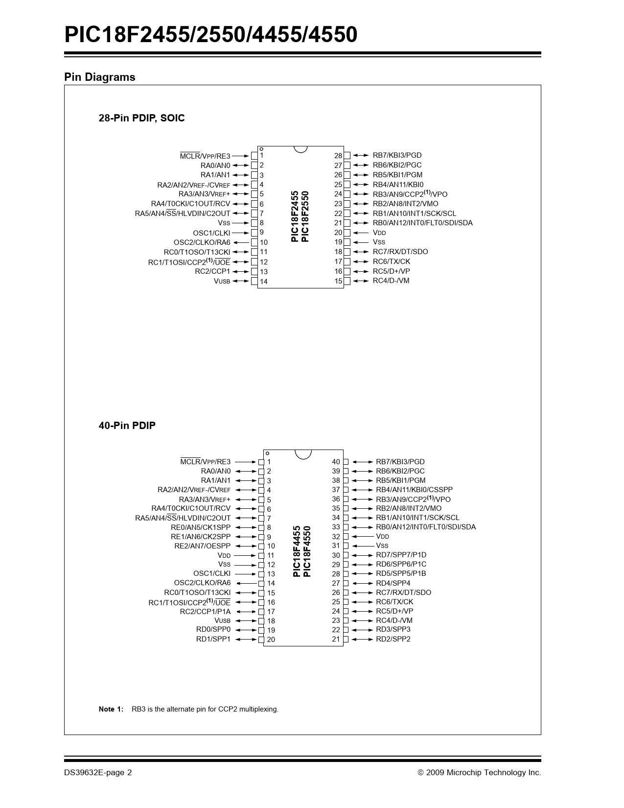 PIC18F2455/2550/4455/4550. Pin Diagrams. 28-Pin PDIP, SOIC. (1). PIC18. 40-Pin PDIP. 455. 550. 18F4. Note 1: