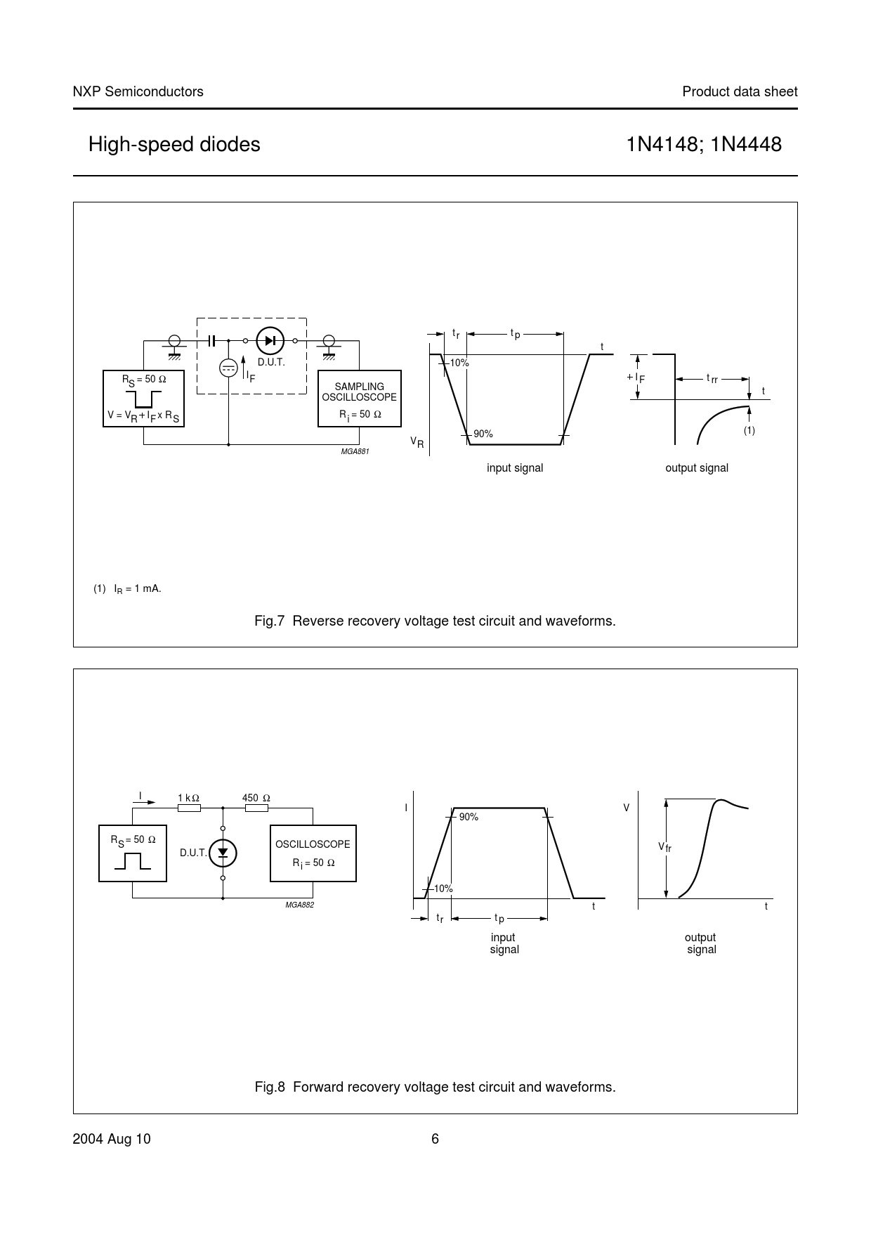 NXP Semiconductors Product data sheet High-speed diodes 1N4148; 1N4448 handbook, full pagewidth t r t p t D.U.T 10% I R = 50 t Ω IF F rr S SAMPLING t