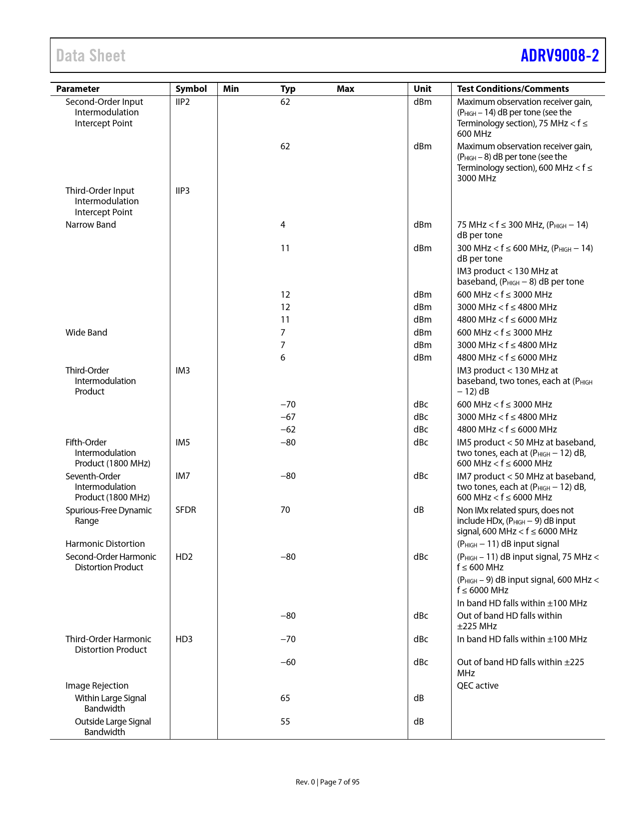 Pages / Page95 / 7 — Data Sheet. ADRV9008-2. Parameter. Symbol. Min. Typ. Max. Unit. Test …