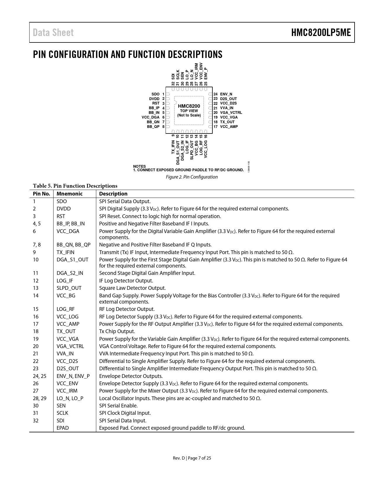 Pages / Page25 / 7 — Data Sheet. HMC8200LP5ME. PIN CONFIGURATION AND FUNCTION DESCRIPTIONS. …