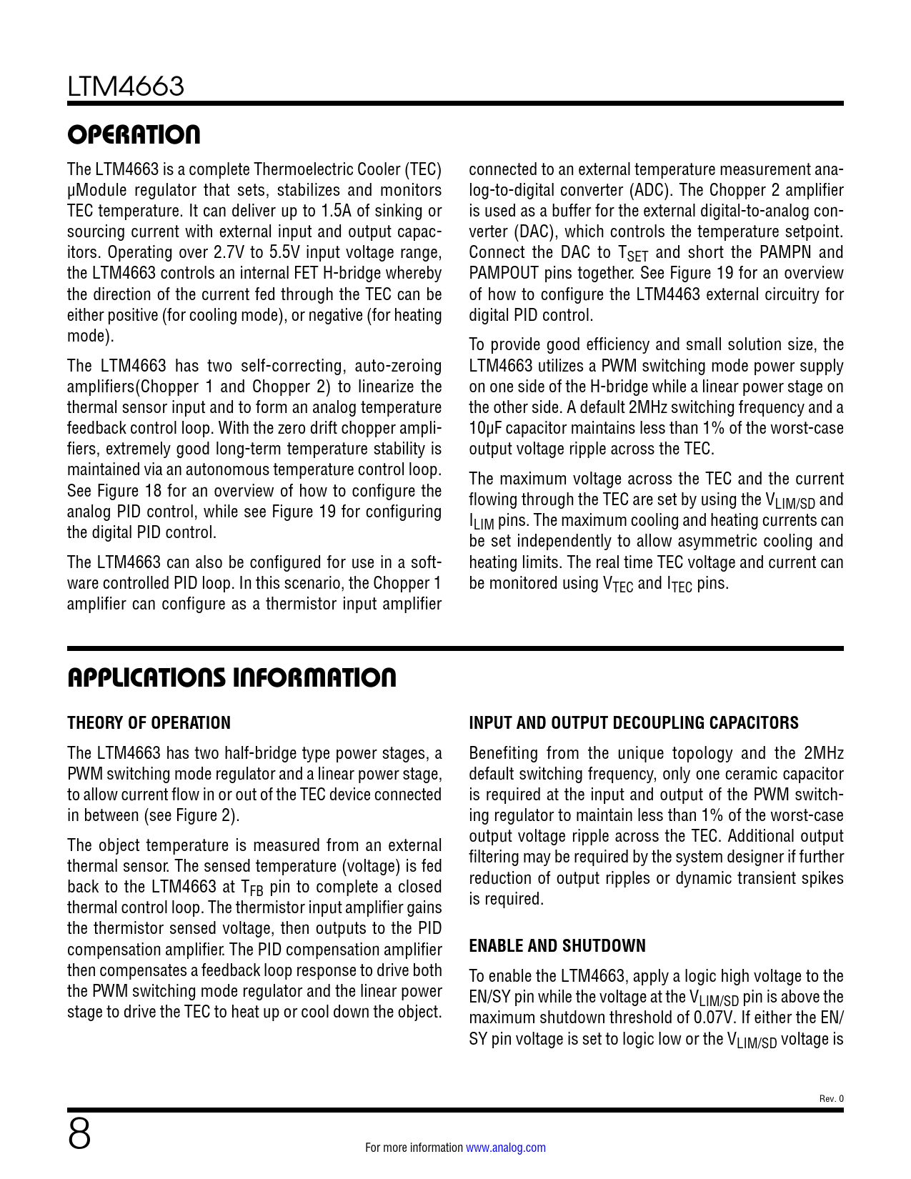 APPLICATIONS INFORMATION THEORY OF OPERATION INPUT AND OUTPUT DECOUPLING CAPACITORS