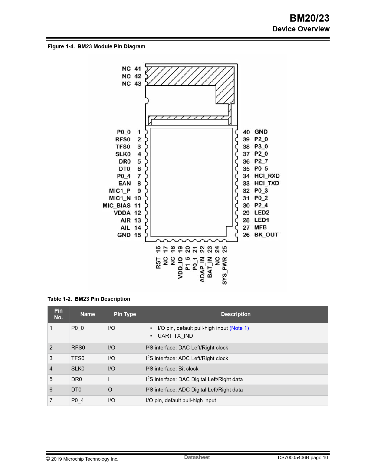 | Pages / Page | 54 / 10 — BM20/23. Device Overview. Figure 1-4. BM23 Module Pin Diagram. Table … |