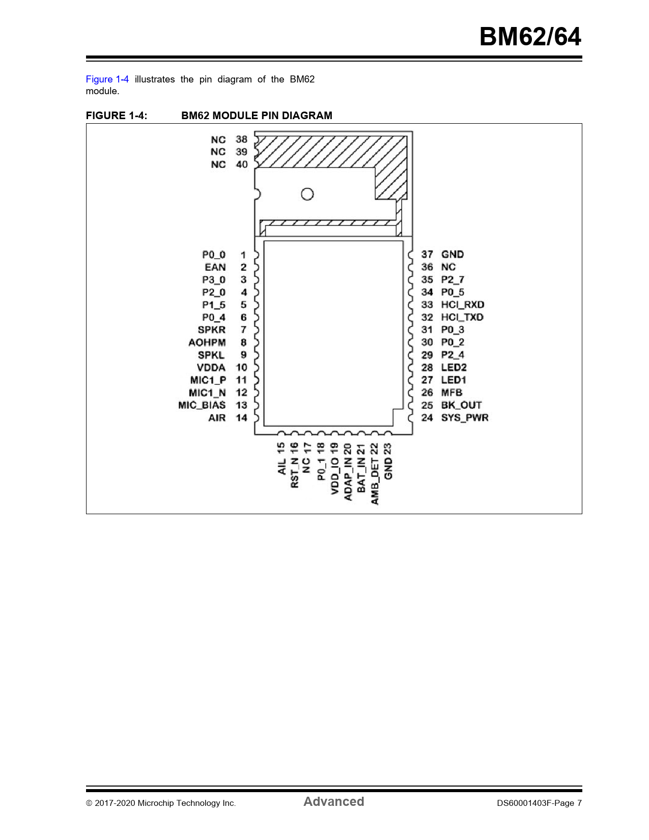 BM62/64. FIGURE 1-4:. BM62 MODULE PIN DIAGRAM. Advanced