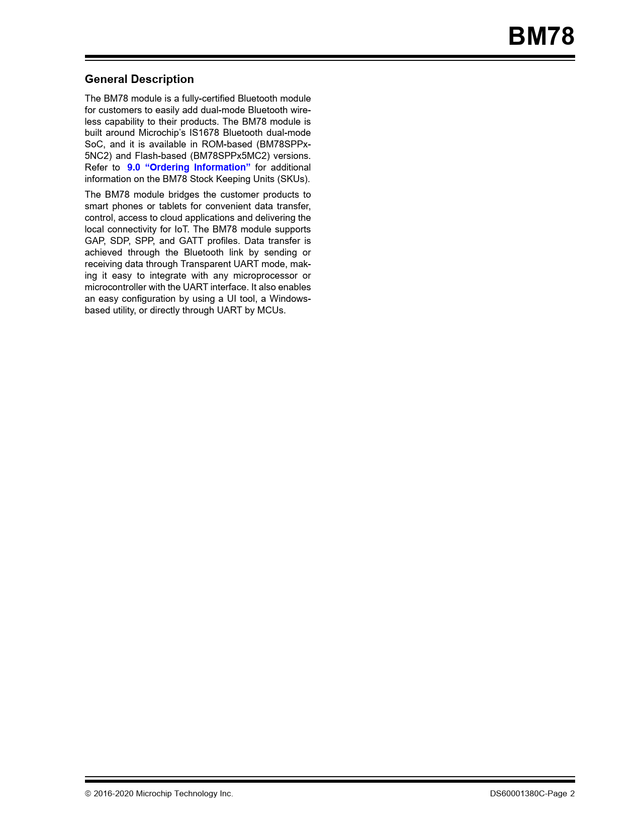Pages / Page50 / 2 — BM78. General Description. 9.0 “Ordering Information”