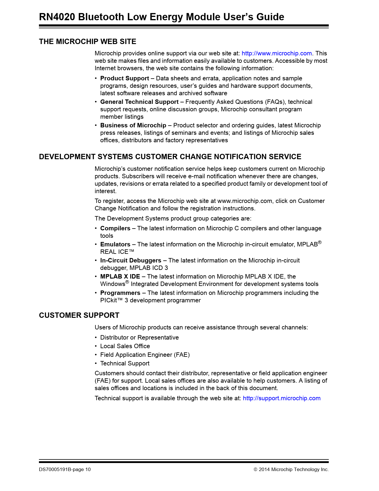 Pages / Page104 / 10 — RN4020 Bluetooth Low Energy Module User’s Guide. THE MICROCHIP WEB SITE. …