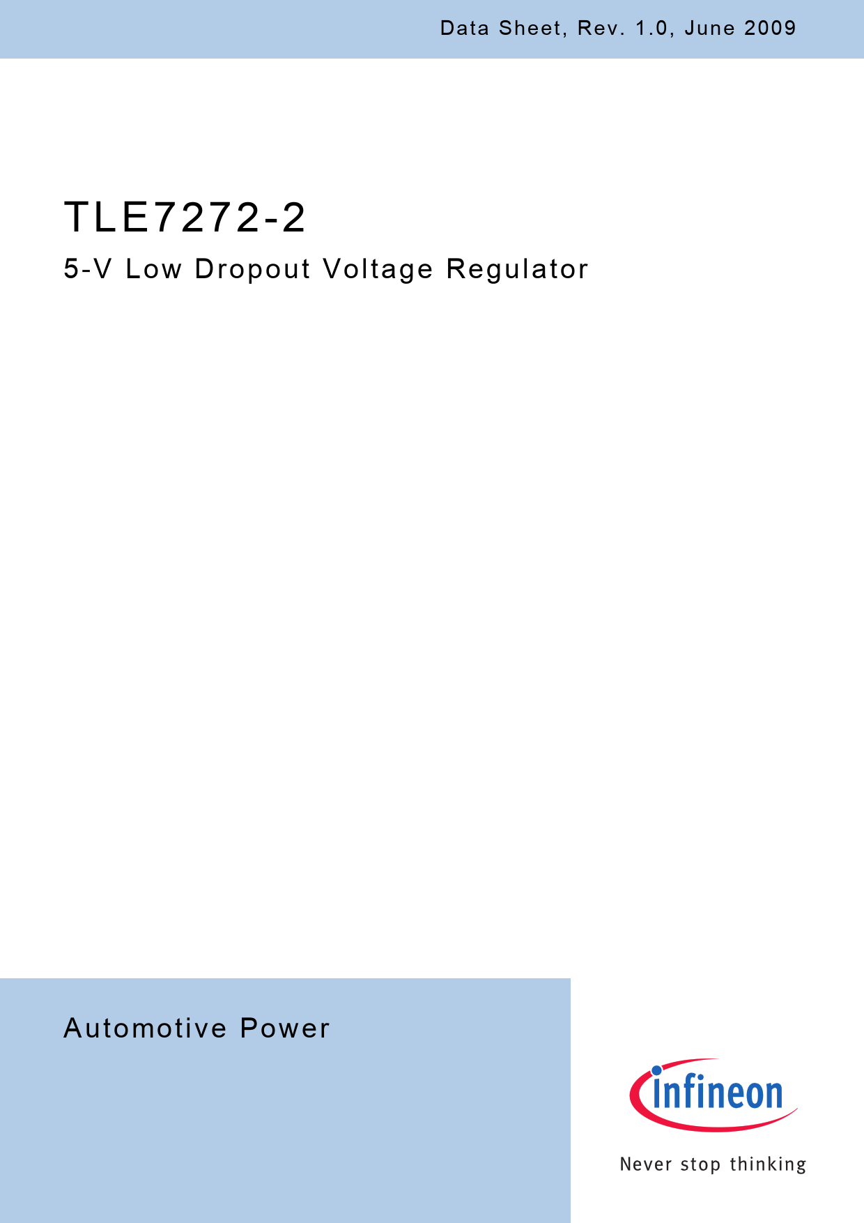Data. Sheet,. Rev. 1.0,. June. 2009. TLE7272-2. 5-V. Low. Dropout. Voltage. Regulator. Automotive. Power. Document. Outline. 1. Overview. 2. Block. Diagram. 3. Pin