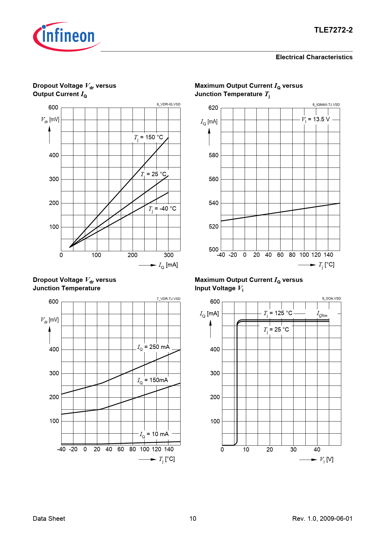 6_VDR-IQ.VSD 600 8_IQMAX-TJ.VSD 620 V [mV] V = 13.5 V dr I [mA] Q I T = 150 °C j 400 580 T = 25 °C 300 j 560 200 540 T = -40 °C j 100 520 500 0 100 200 300 -40 -20 0 20 40 60 80 100 120 140 I [mA] T [°C] Q j