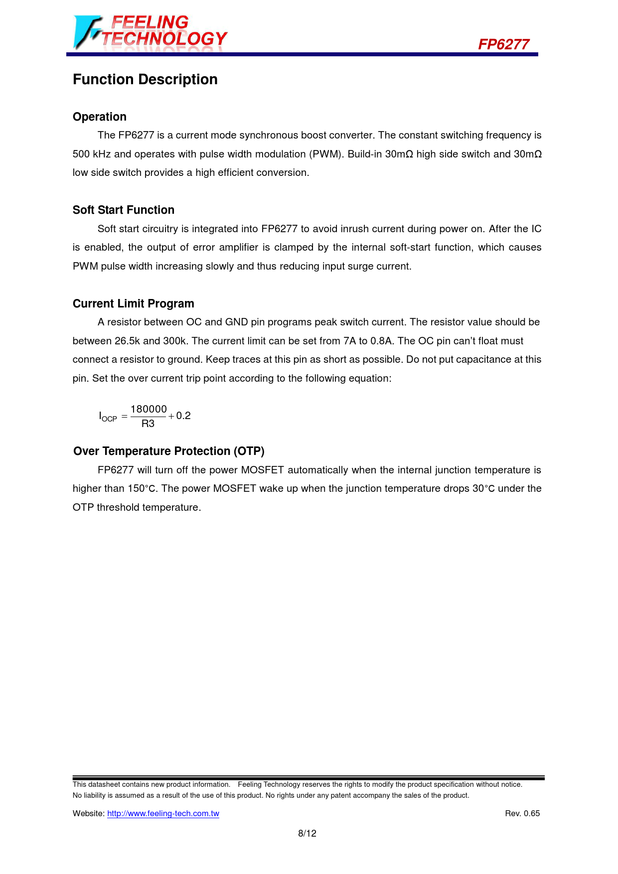 Pages / Page12 / 8 — FP6277. Function Description. Operation