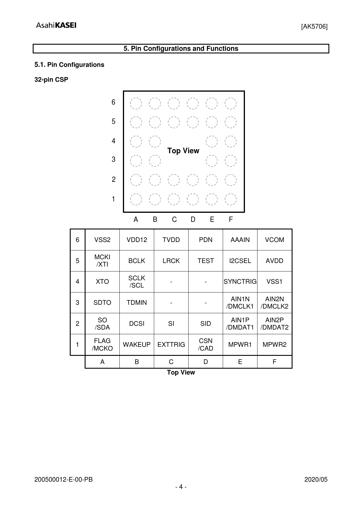 5. Pin Configurations and Functions 5.1. Pin Configurations 32-pin CSP
