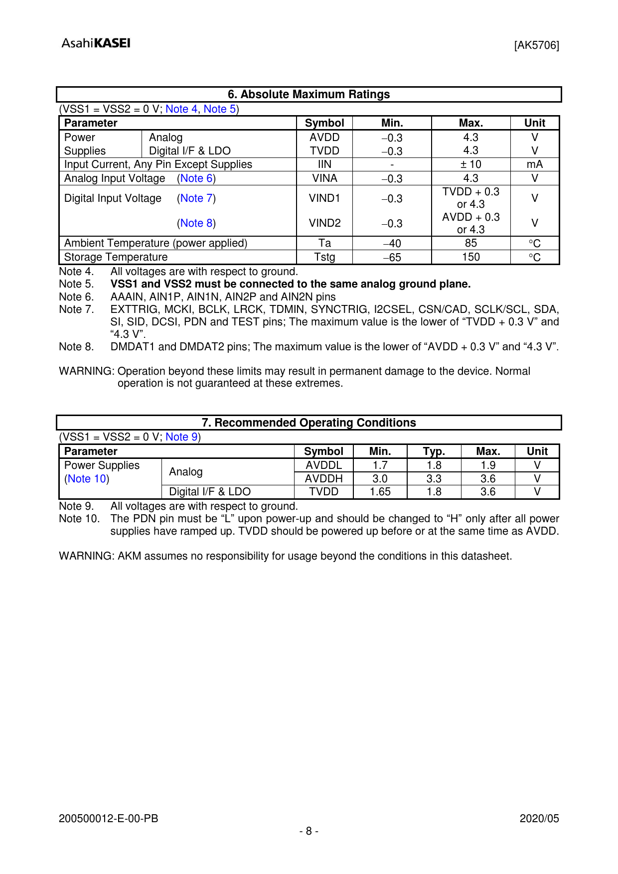 Datasheet AK5706 (Asahi Kasei Microdevices) - 8