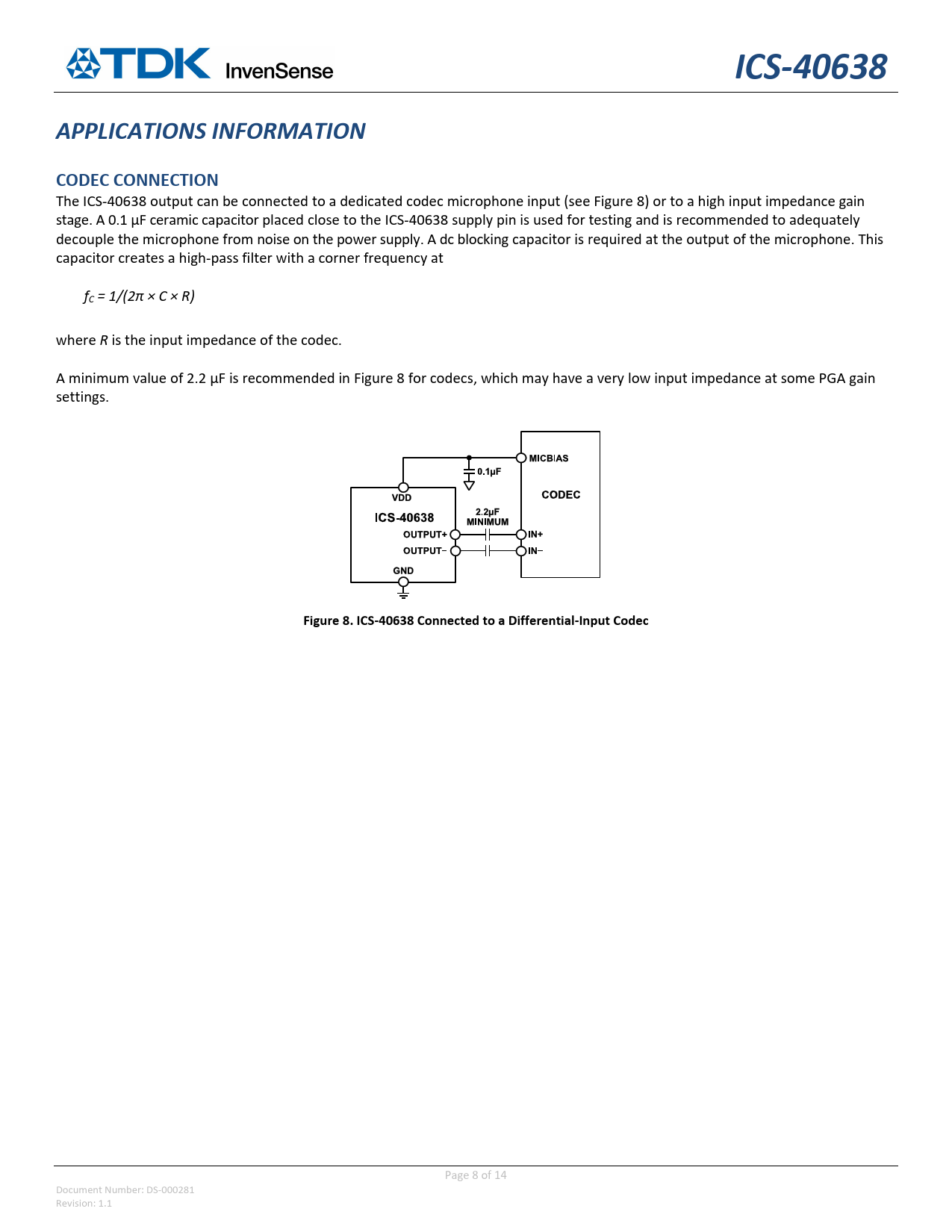 Pages / Page14 / 8 —   ICS‐40638.   APPLICATIONS INFORMATION .   CODEC CONNECTION . …