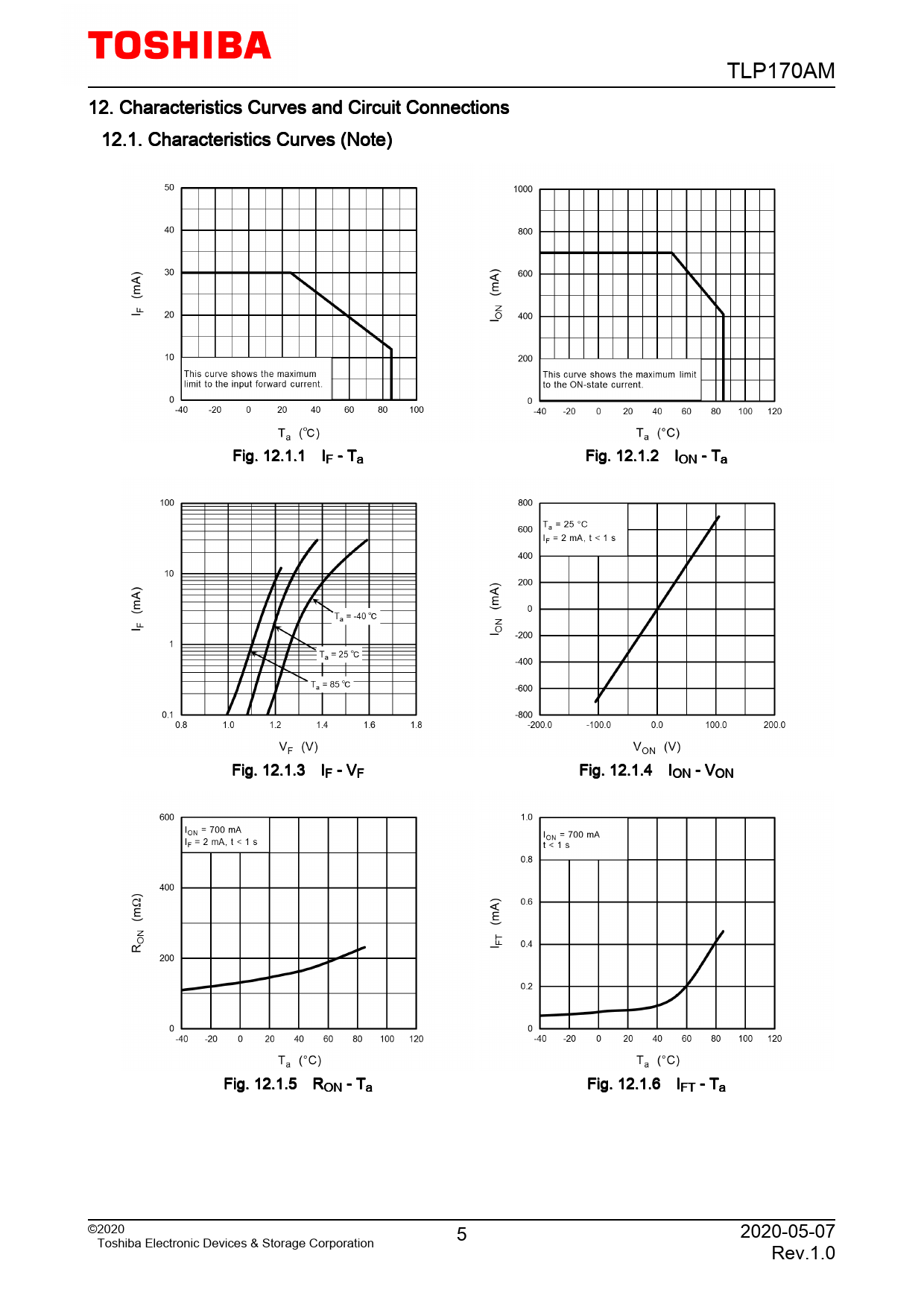 | Pages / Page | 11 / 5 — TLP170AM. 12. Characteristics. Curves. and. Circuit. Connections. 12.1. … |