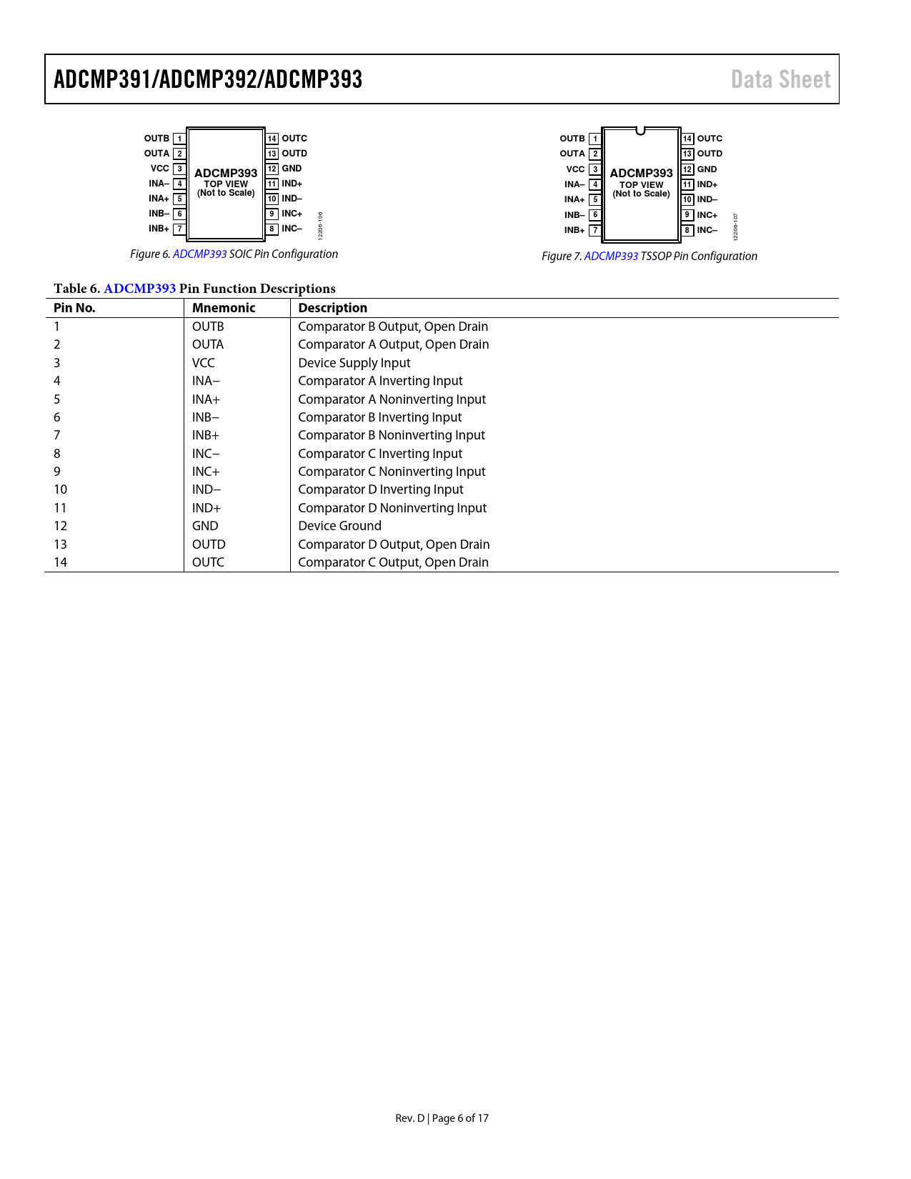ADCMP391/ADCMP392/ADCMP393. Data Sheet. OUTB. 14 OUTC. OUTB 1. OUTA. 13 OUTD. OUTA 2. VCC. 12 GND. ADCMP393. INA–. TOP VIEW. 11 IND+