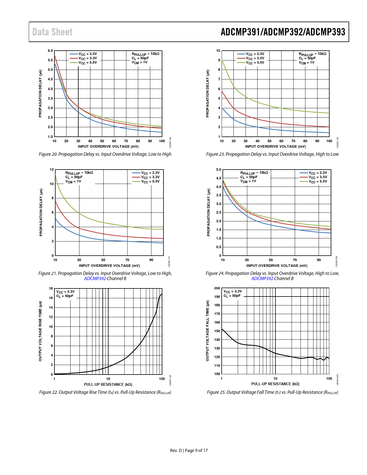 | Pages / Page | 17 / 9 — Data Sheet. ADCMP391/ADCMP392/ADCMP393. 6.0. VCC = 2.3V. RPULLUP = 10kΩ. … |