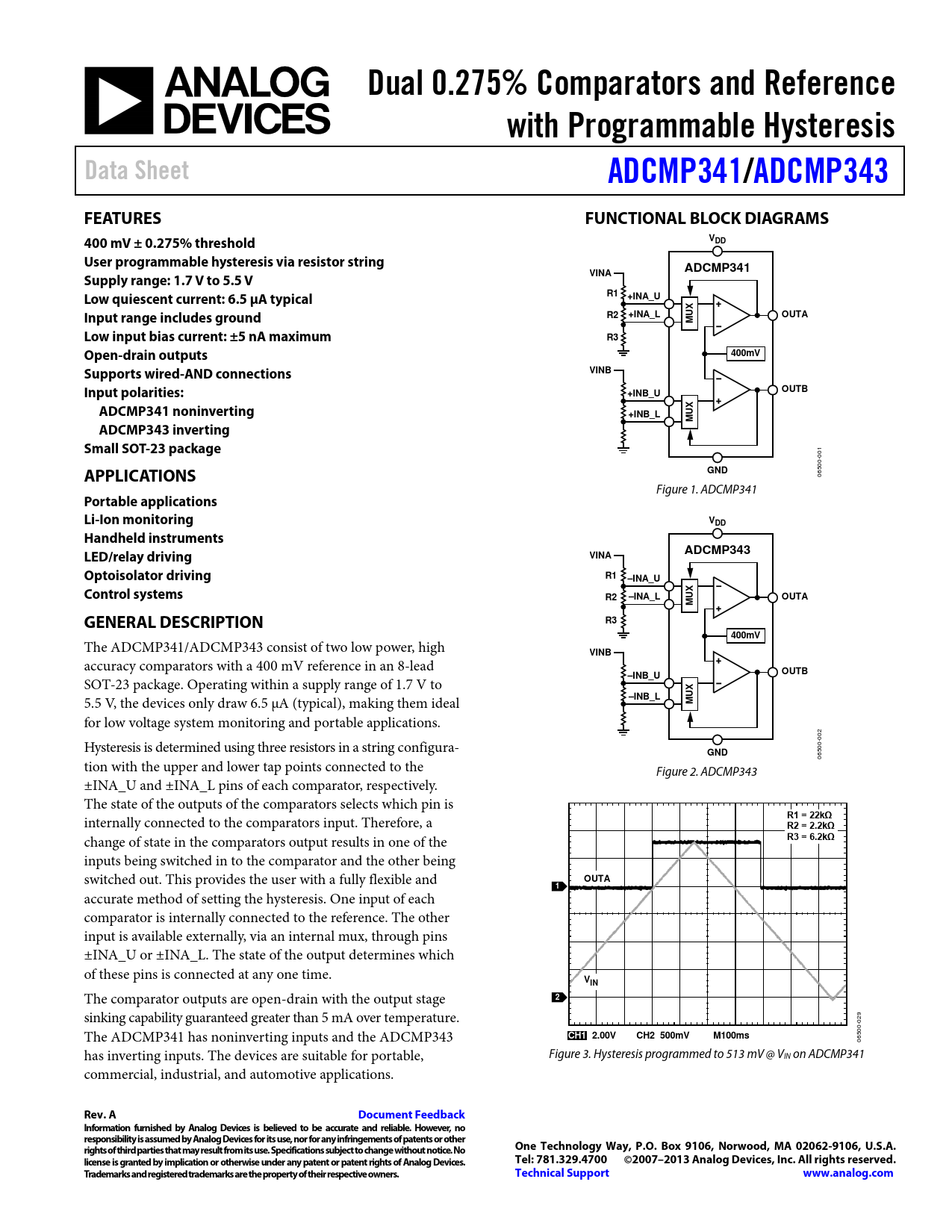 Dual 0.275% Comparators and Reference. with Programmable Hysteresis. Data Sheet. ADCMP341/. ADCMP343. FEATURES