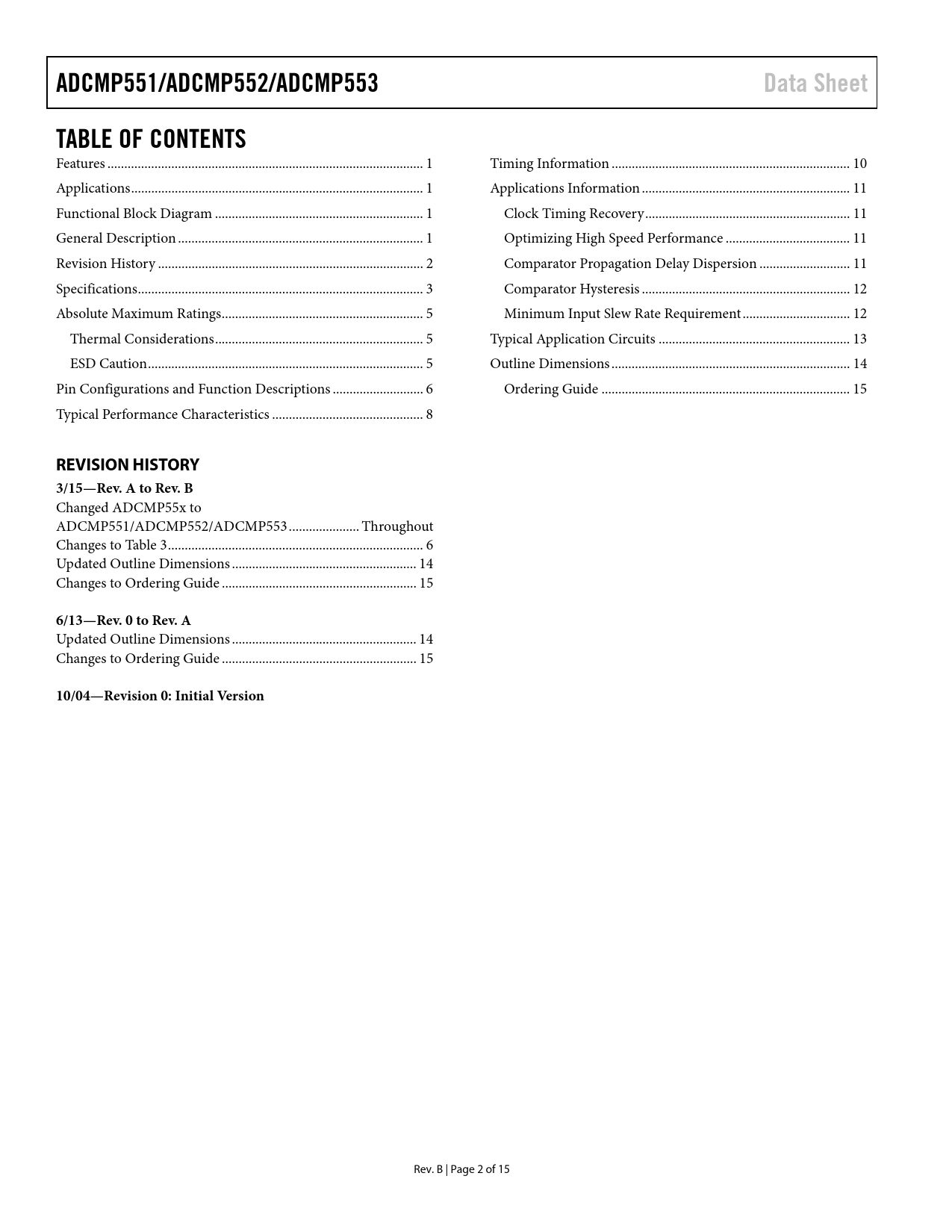 ADCMP551/ADCMP552/ADCMP553 Data Sheet TABLE OF CONTENTS REVISION HISTORY 3/15—Rev A to Rev B 6/13—Rev 0 to Rev A