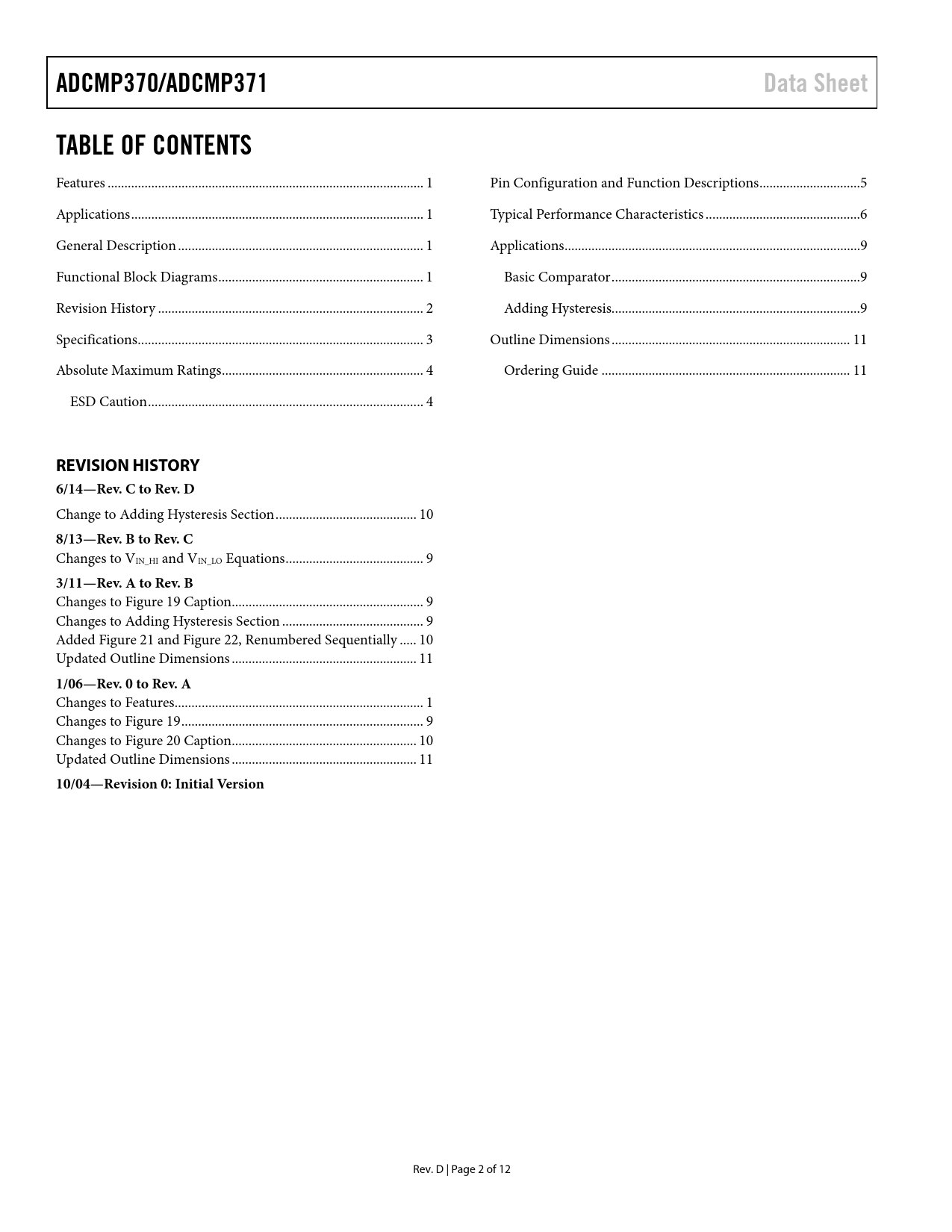 Pages / Page12 / 2 — ADCMP370/ADCMP371. Data Sheet. TABLE OF CONTENTS. REVISION HISTORY …