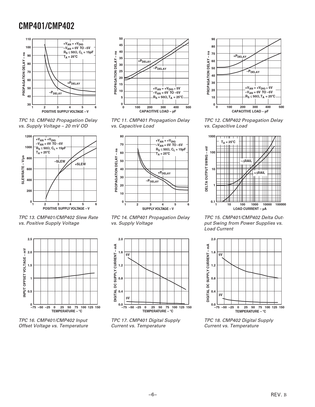 TPC 16. CMP401/CMP402 Input TPC 17. CMP401 Digital Supply TPC 18. CMP402 Digital Supply Offset Voltage vs. Temperature Current vs. Temperature Current vs. Temperature –6– REV. B