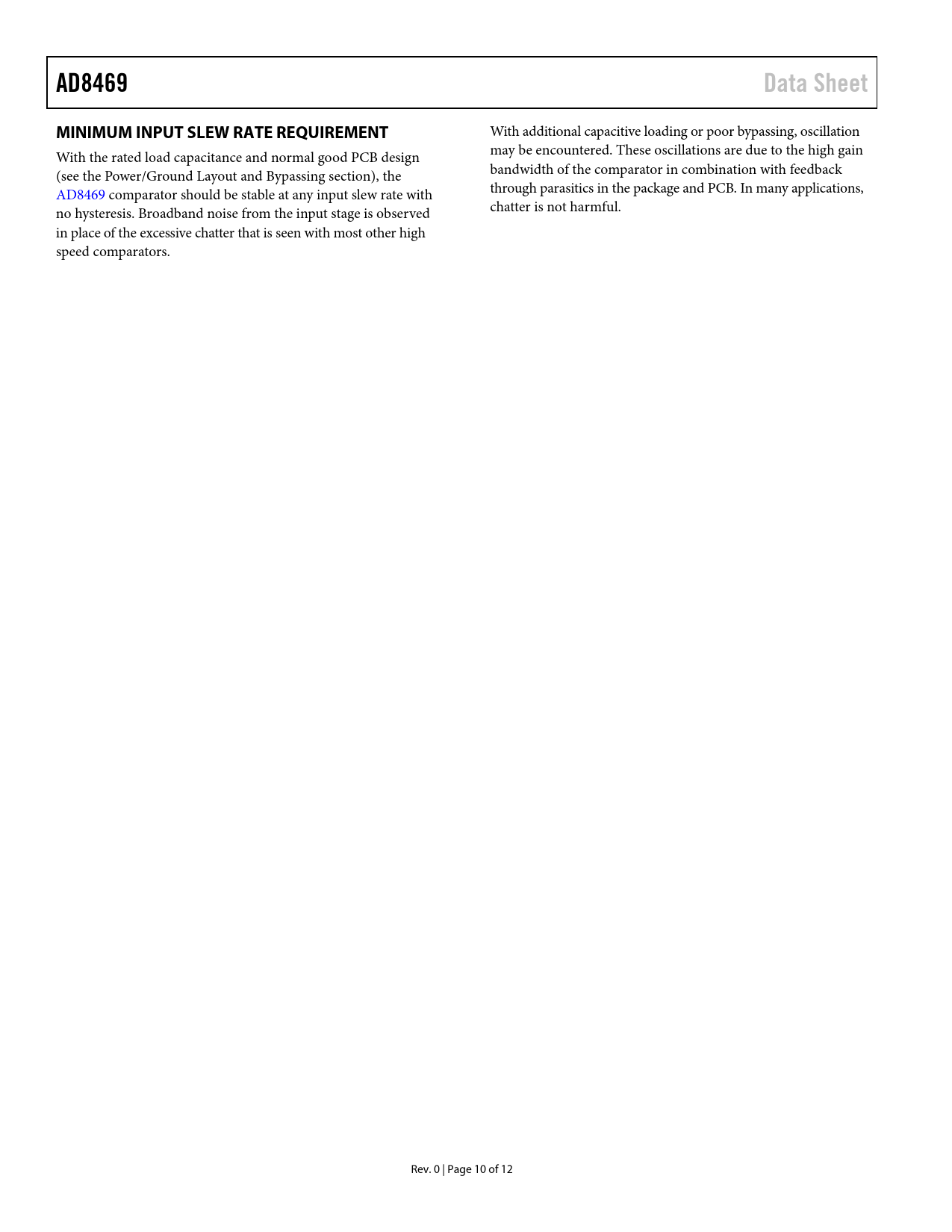 Pages / Page12 / 10 — AD8469. Data Sheet. MINIMUM INPUT SLEW RATE REQUIREMENT