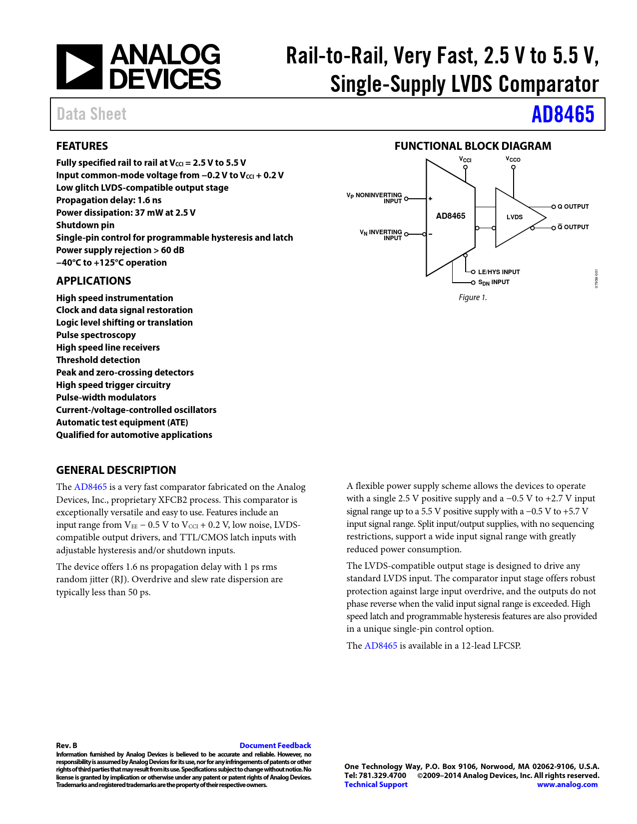 | Pages / Page | 14 / 1 — Rail-to-Rail, Very Fast, 2.5 V to 5.5 V,. Single-Supply LVDS Comparator. … |
