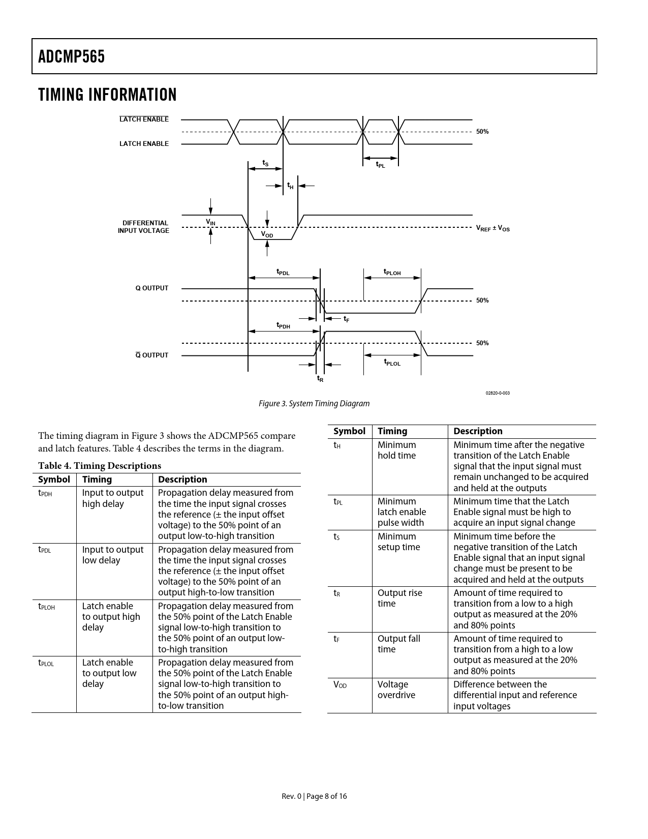 02820-0-003 Figure 3. System Timing Diagram The timing diagram in Figure 3 shows the ADCMP565 compare