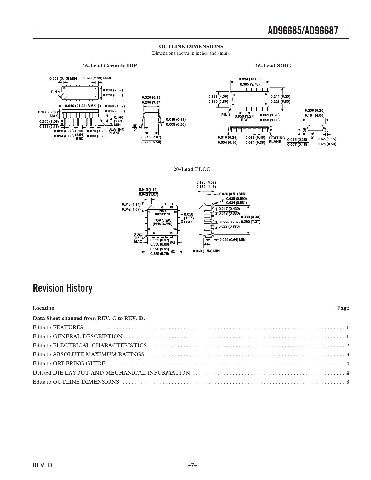| Pages / Page | 8 / 7 — AD96685/AD96687. OUTLINE DIMENSIONS. 16-Lead Ceramic DIP. 16-Lead SOIC. … |