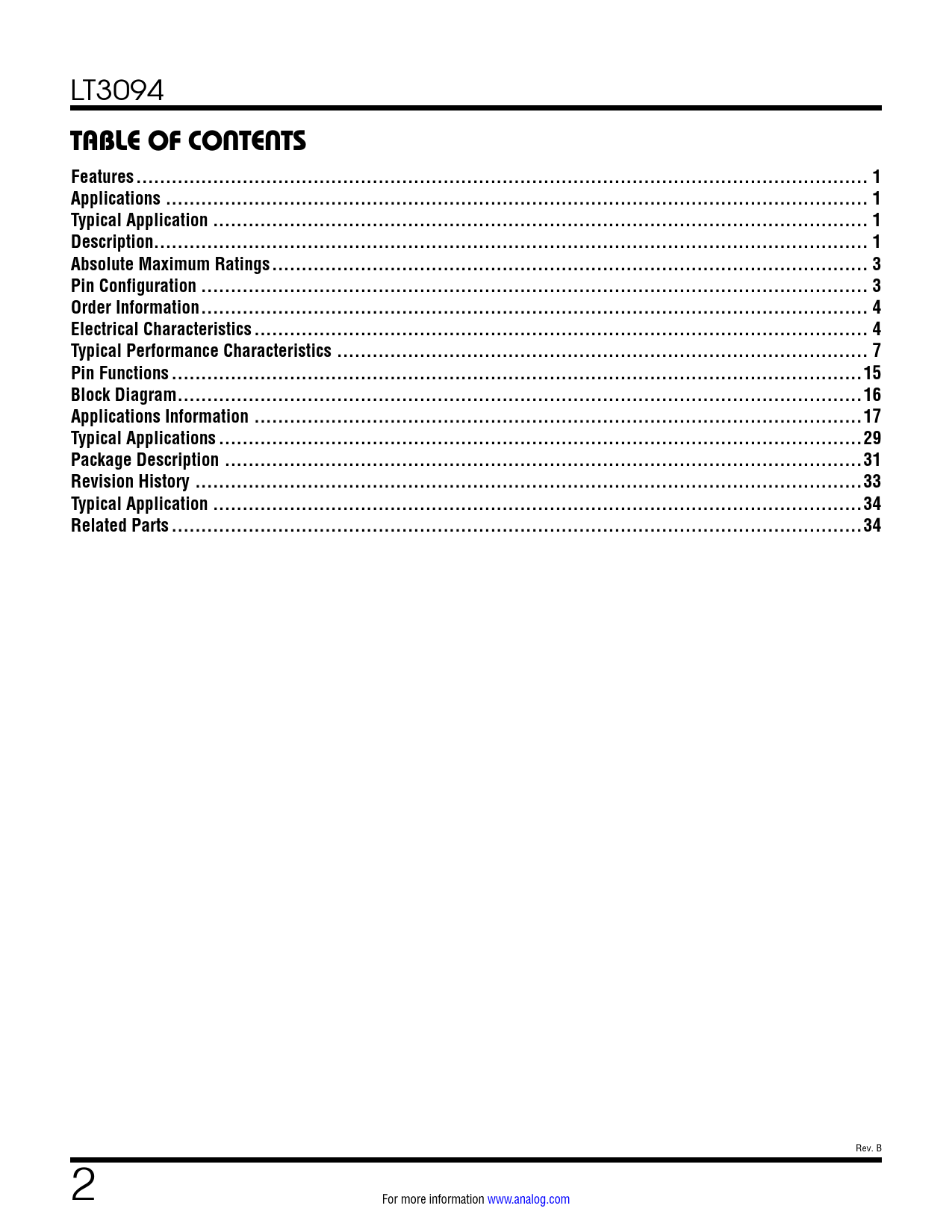 Pages / Page34 / 2 — TABLE OF CONTENTS. Features .. 1. Applications ... 1. Typical Application …