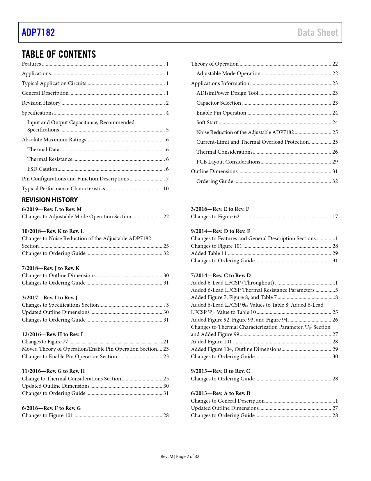 Pages / Page32 / 2 — ADP7182. Data Sheet. TABLE OF CONTENTS. REVISION HISTORY. 6/2019—Rev. L …