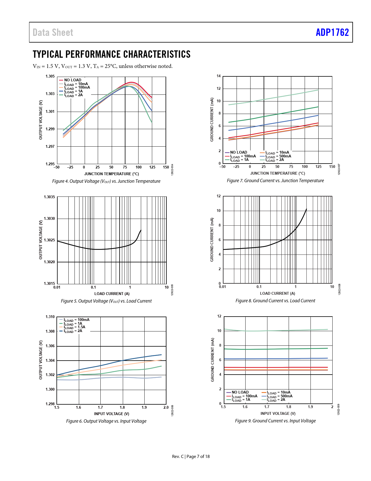 Pages / Page18 / 7 — Data Sheet. ADP1762. TYPICAL PERFORMANCE CHARACTERISTICS. 1.305. NO LOAD. …