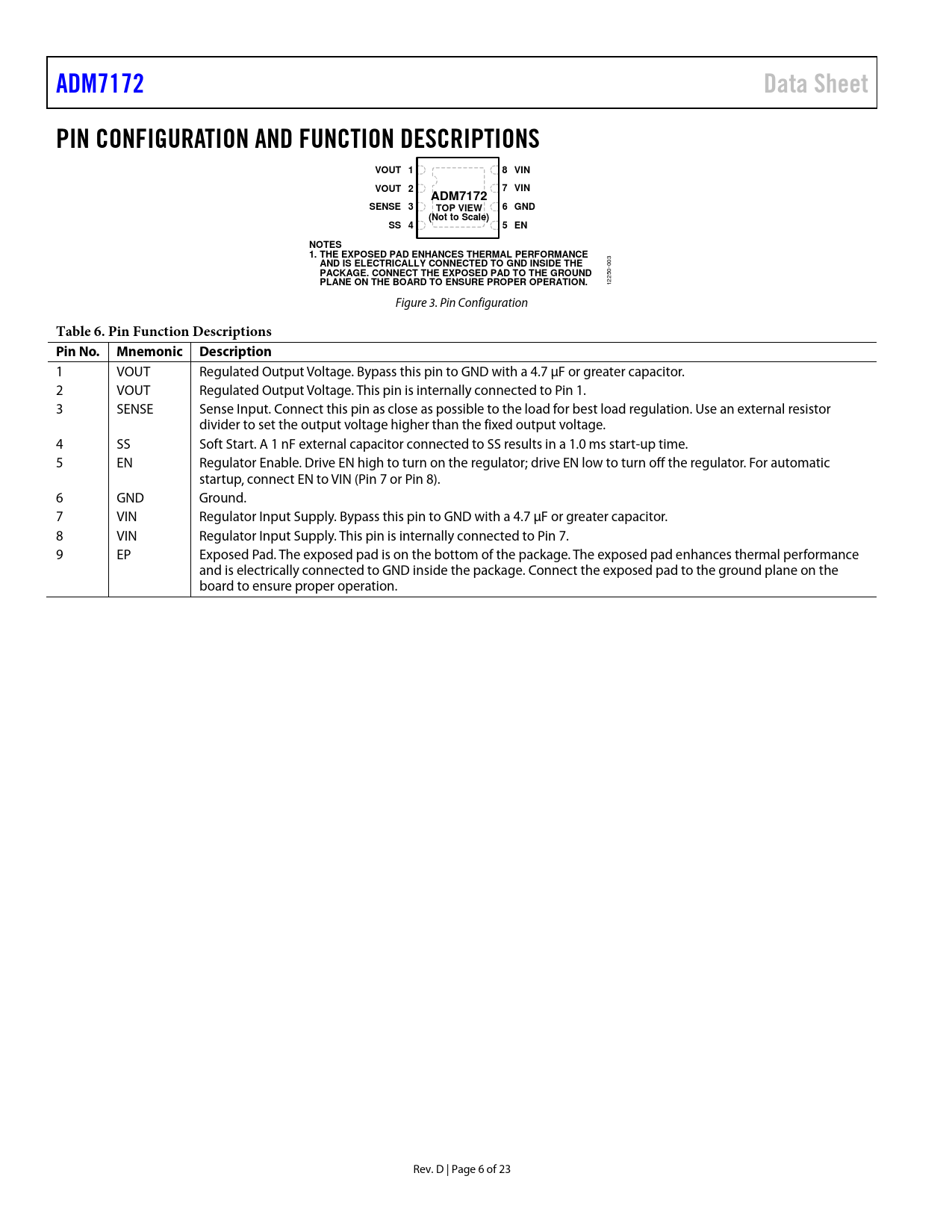 Pages / Page23 / 6 — ADM7172. Data Sheet. PIN CONFIGURATION AND FUNCTION DESCRIPTIONS. VOUT 1. …