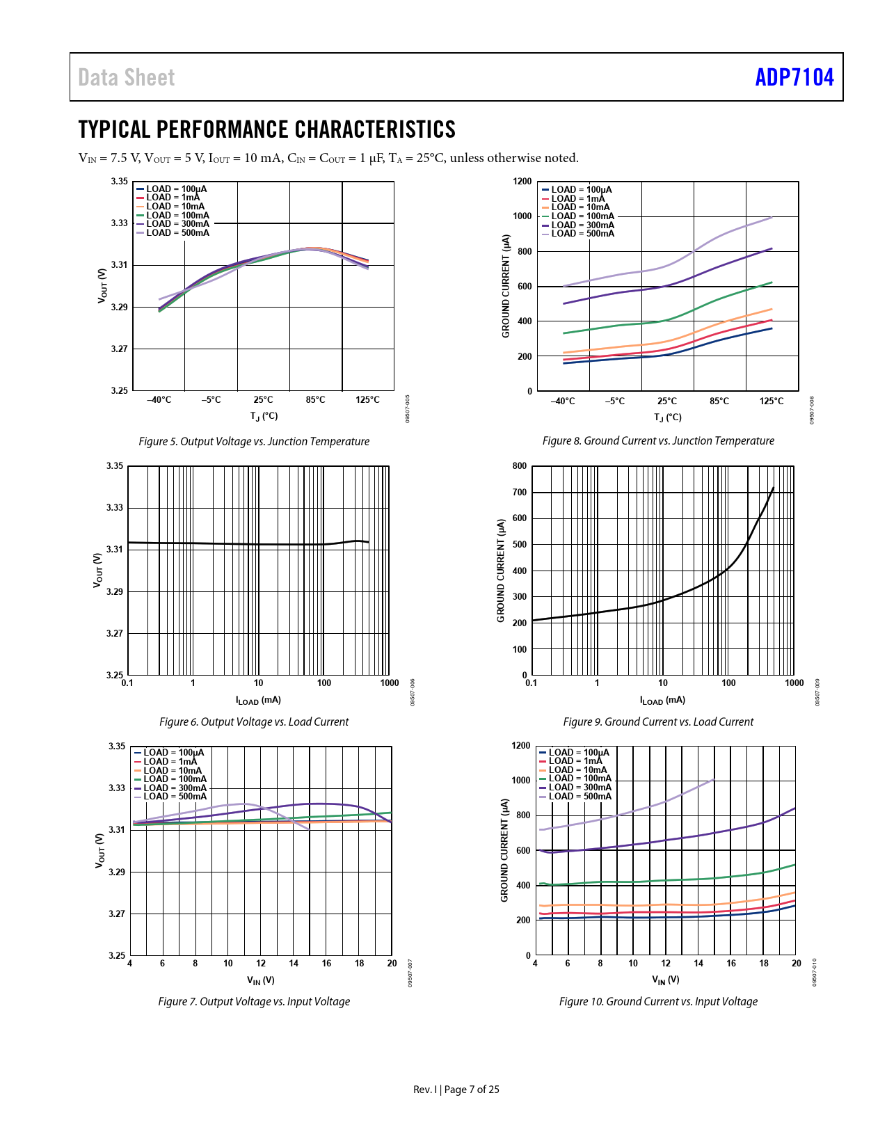 | Pages / Page | 25 / 7 — Data Sheet. ADP7104. TYPICAL PERFORMANCE CHARACTERISTICS. 3.35. 1200. … |