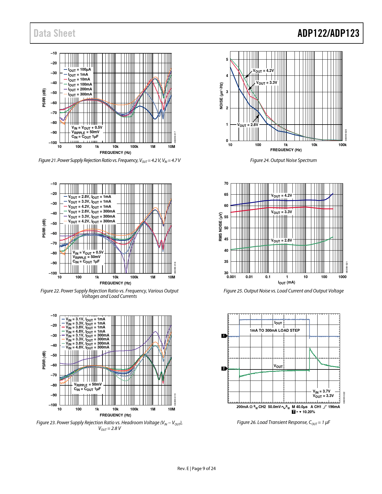 Data Sheet. ADP122/ADP123. –10. –20. IOUT = 100µA. –30. OUT = 4.2V. IOUT = 1mA. IOUT = 10mA. –40. OUT = 3.3V. OUT = 100mA. OUT = 200mA. /√H. –50